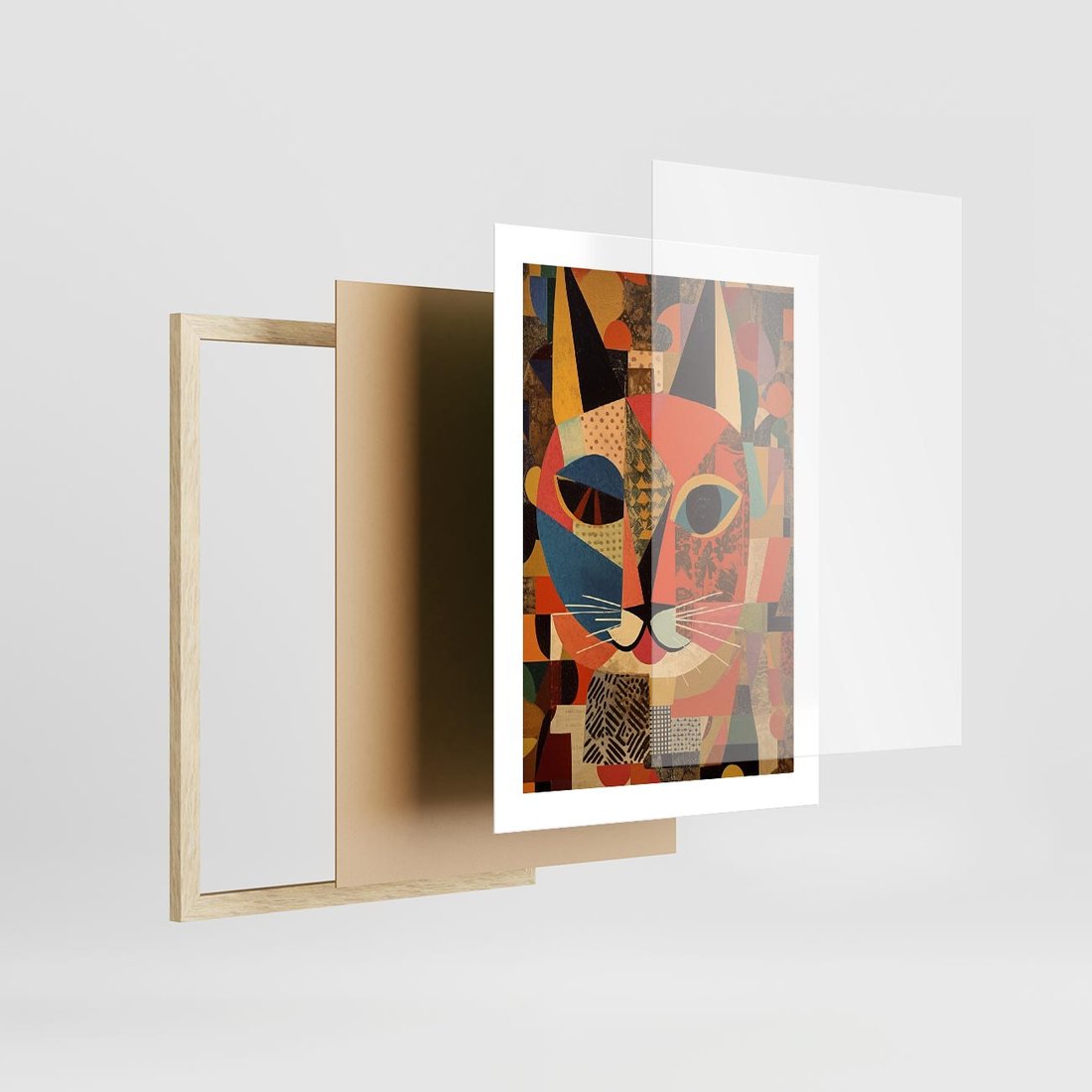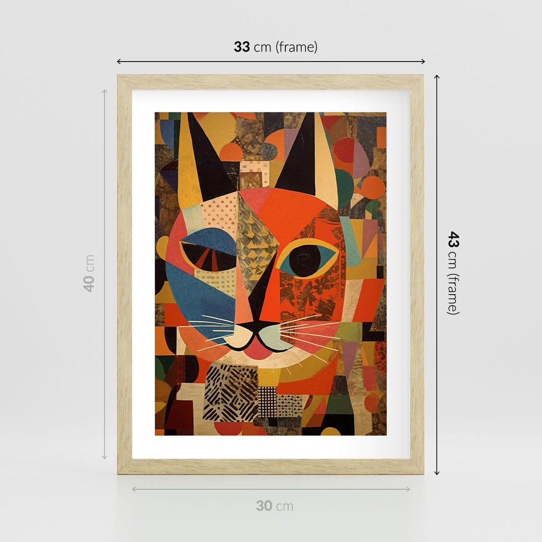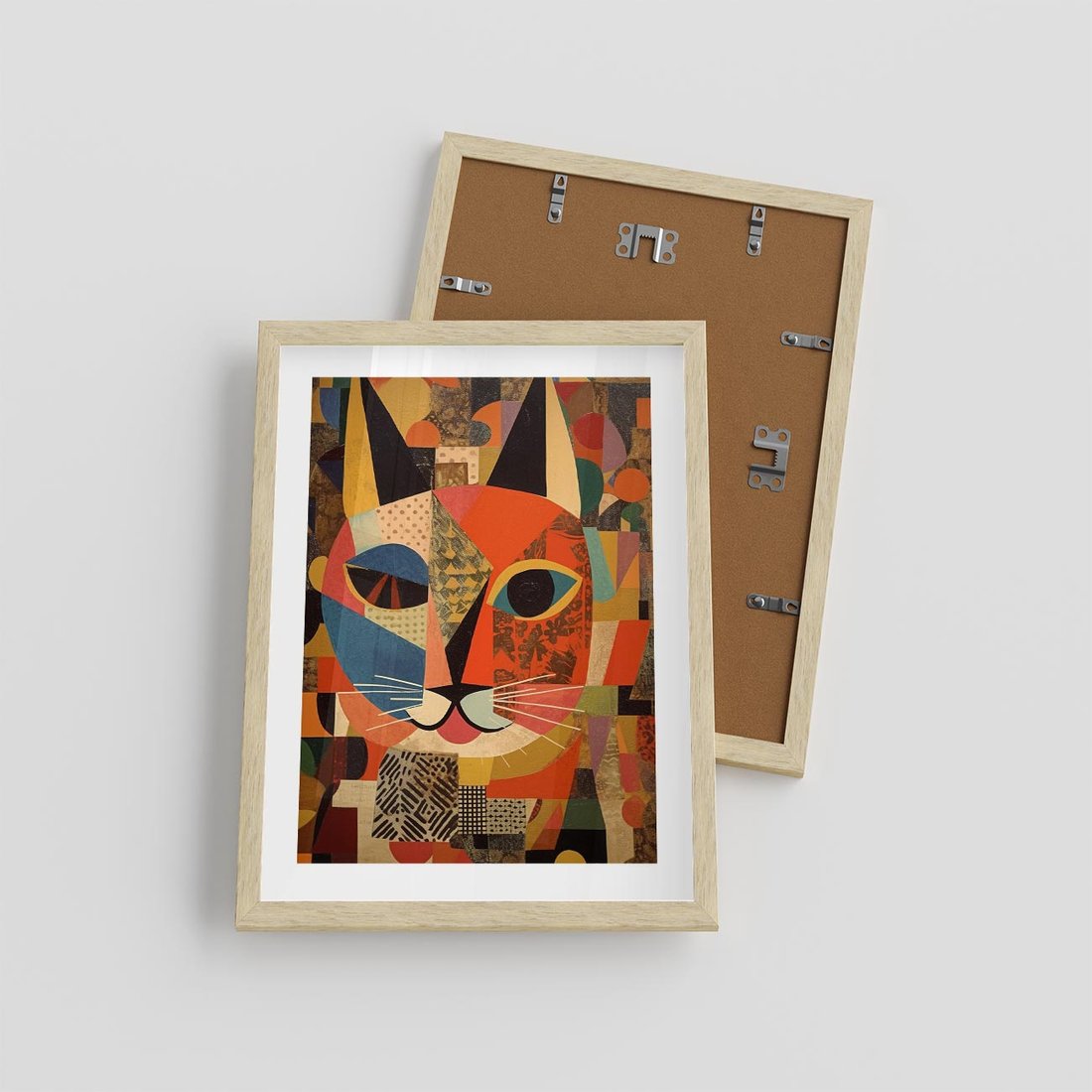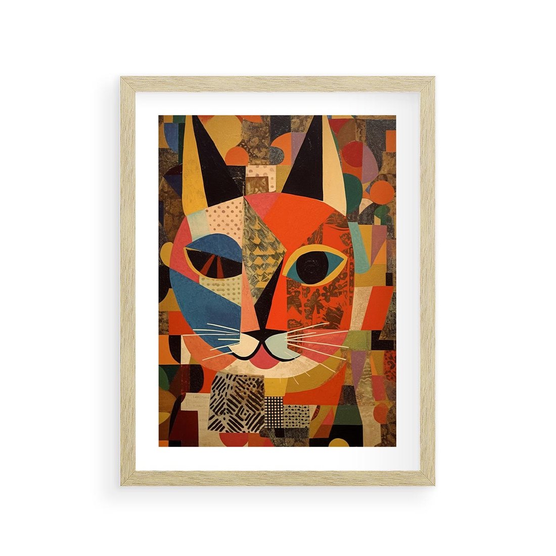 Plakat w ramie 30x40 - Impresje Nieznanych Odniesień - abstrakcyjny obraz olejny, kot - rama drewno
