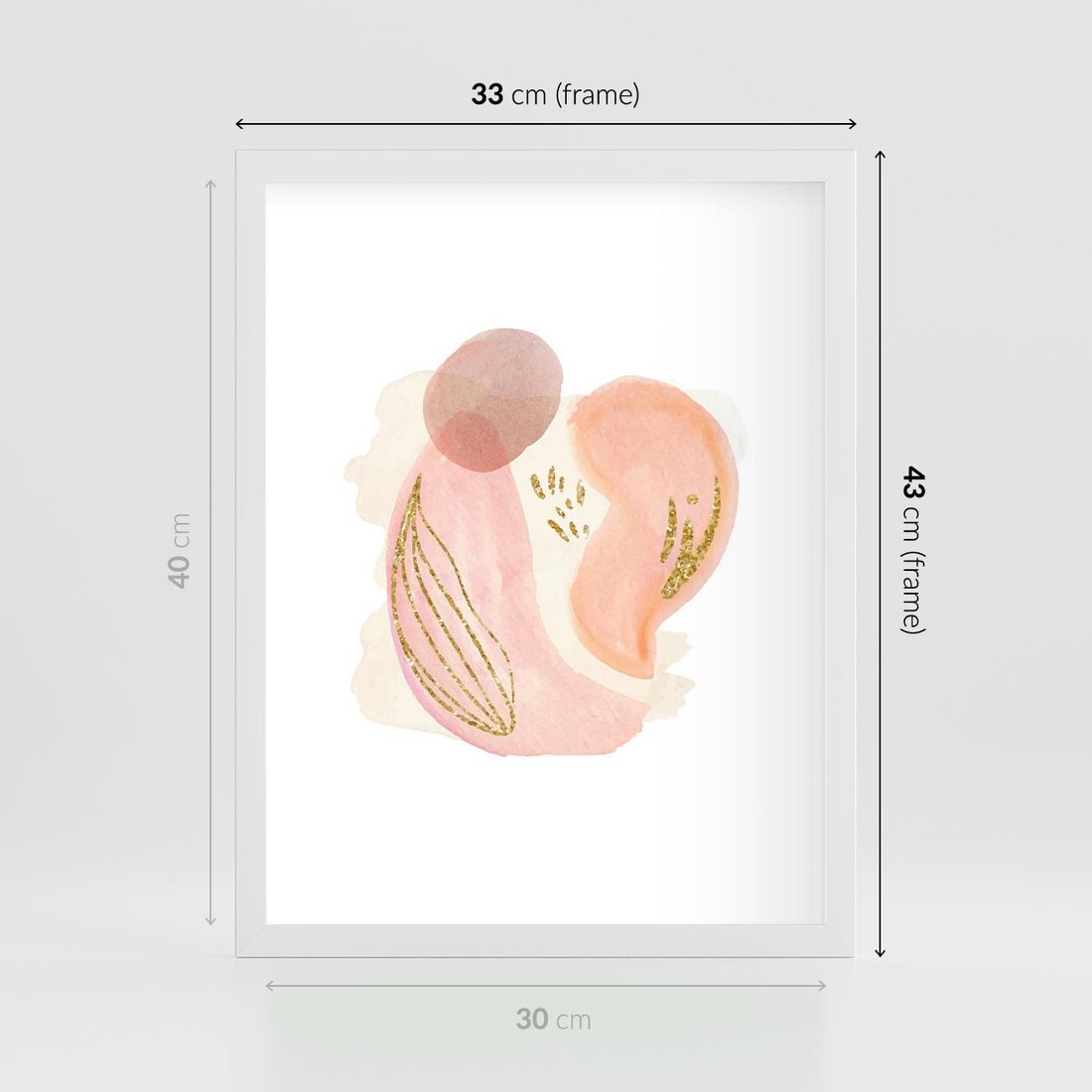 Plakat w ramie 30x40 - Impresje Przenikających Form - abstrakcyjne akwarelowe plamy, minimalizm - rama biała