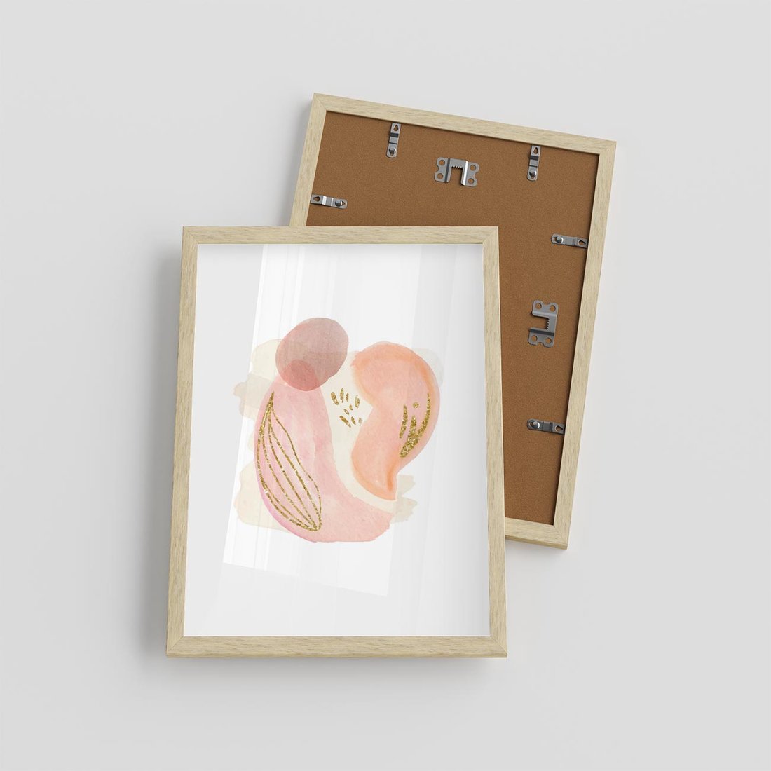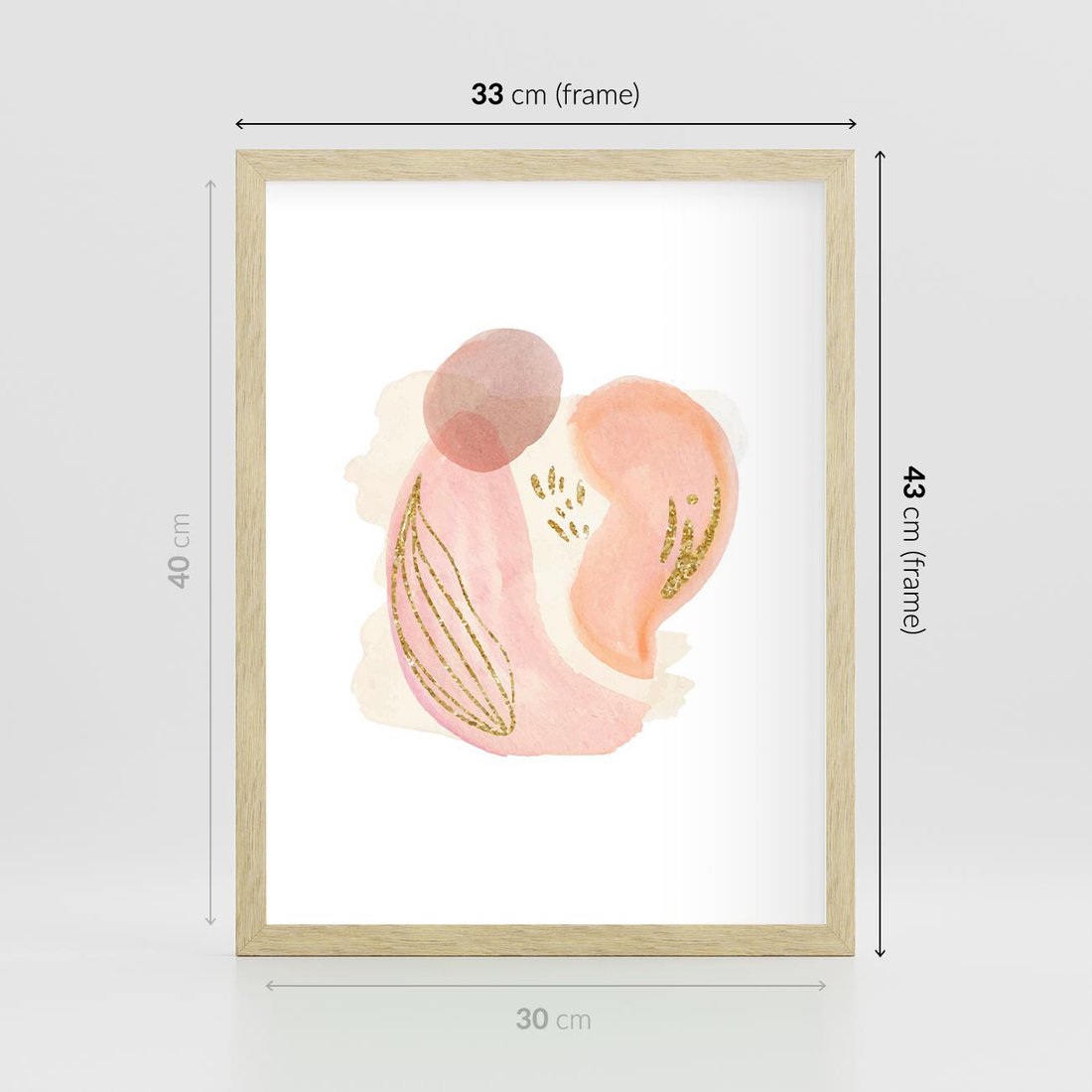 Plakat w ramie 30x40 - Impresje Przenikających Form - abstrakcyjne akwarelowe plamy, minimalizm - rama drewno