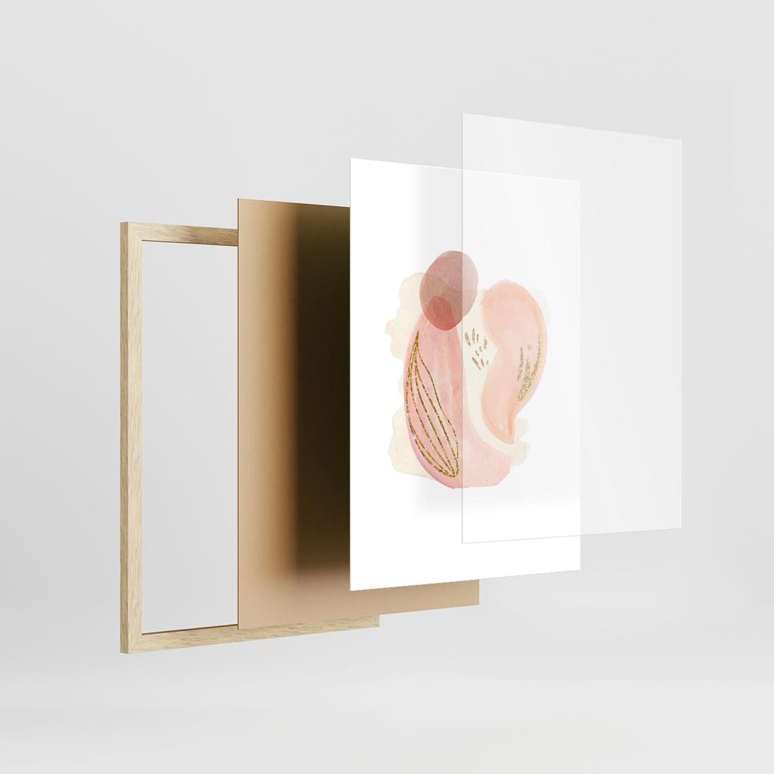 Abstrakcyjne akwarelowe plamy w minimalistycznym stylu. Subtelne pastele złagodzone złotymi elementami tworzą spokojną i wyrafinowaną kompozycję.
