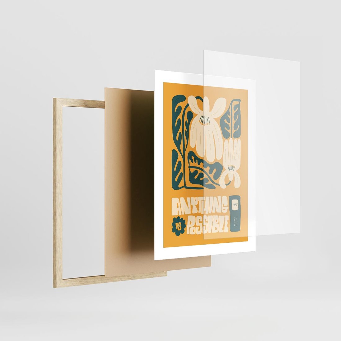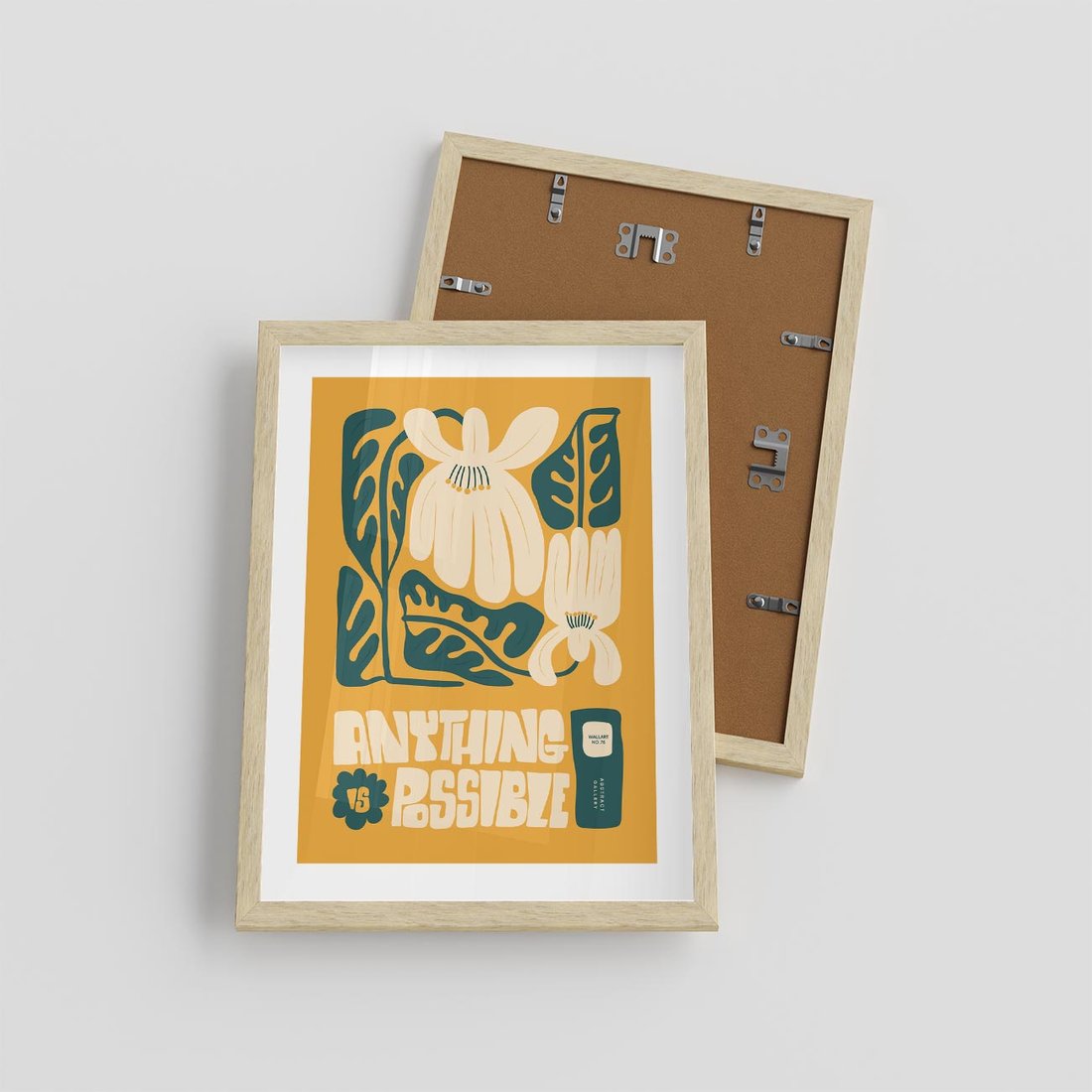 Ten nowoczesny plakat łączy kwiaty w kontekście sztuki modern z efektowną typografią. Sztuka ta wprowadza energetyczny impuls do przestrzeni, inspirując do odkrywania piękna natury i formy w nowatorskim wydaniu.