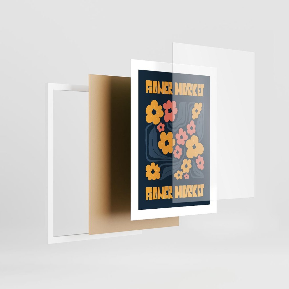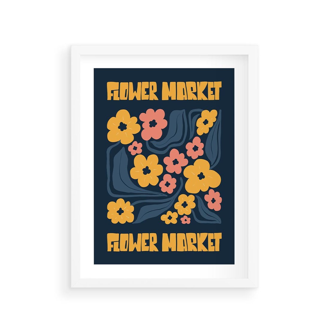 Ten plakat emanuje elegancją dzięki granatowemu tłu, na którym kontrastują wyraziste żółte kwiaty. Dominująca typografia dodaje charakteru, tworząc kompozycję pełną siły i piękna.