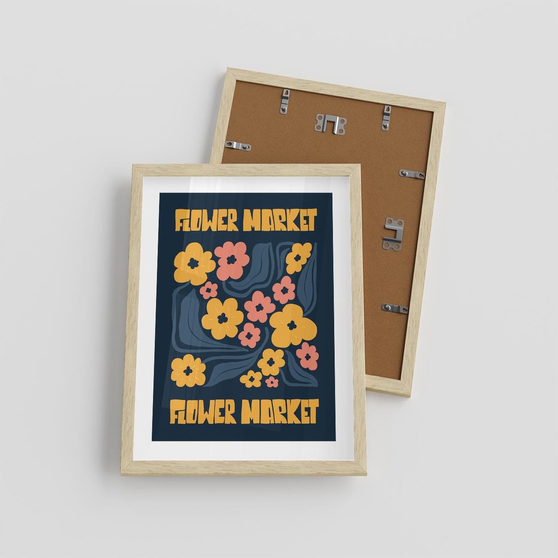 Ten plakat emanuje elegancją dzięki granatowemu tłu, na którym kontrastują wyraziste żółte kwiaty. Dominująca typografia dodaje charakteru, tworząc kompozycję pełną siły i piękna.