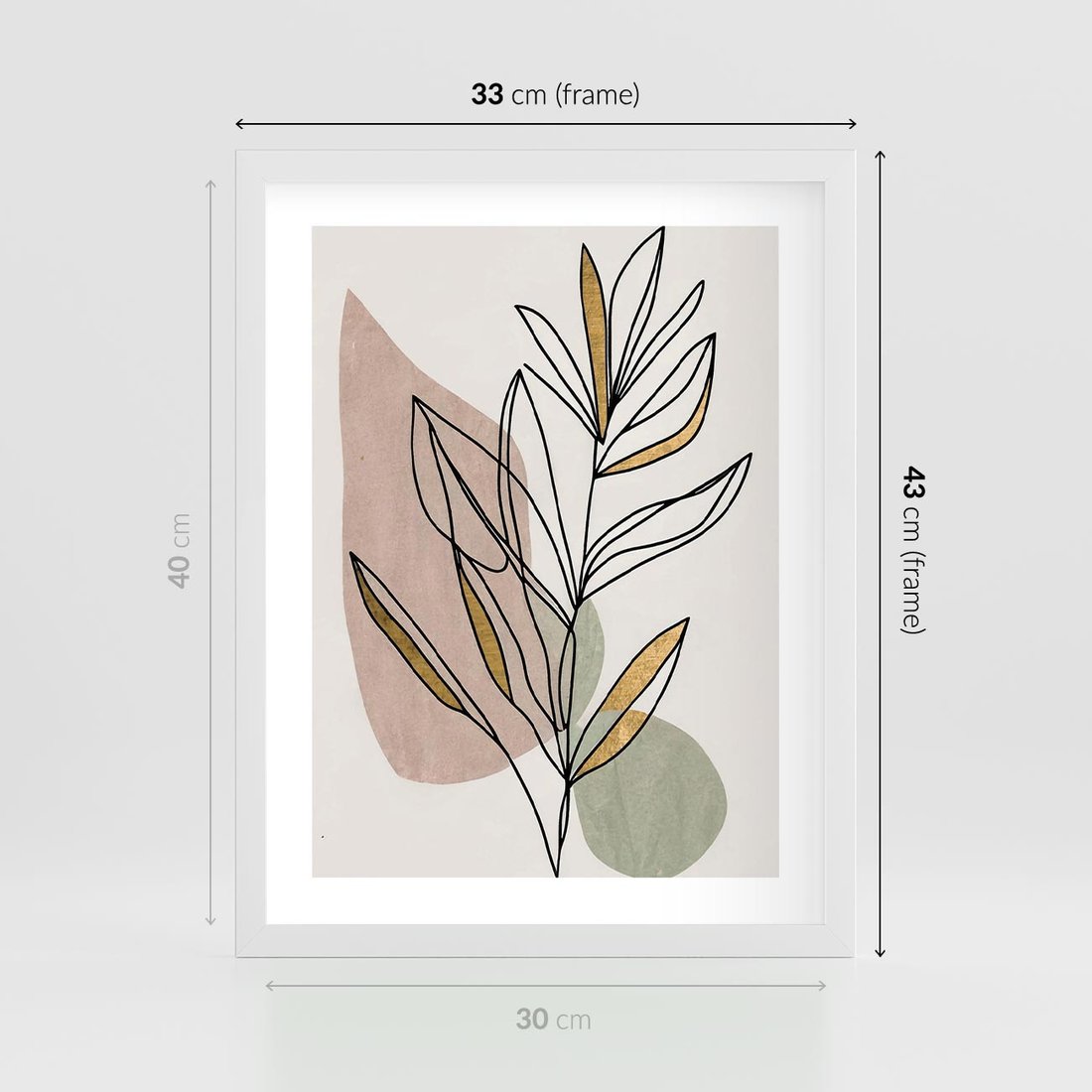 Plakat w ramie 30x40 - Impulsy Subtelnej Harmonii - abstrakcyjny obraz boho, liście - rama biała