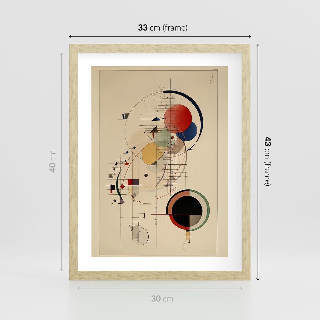 Plakat w ramie 30x40 - Impulsy Wydobyte z Cienia - abstrakcyjna geometryczna kompozycja, koła linie - rama drewno