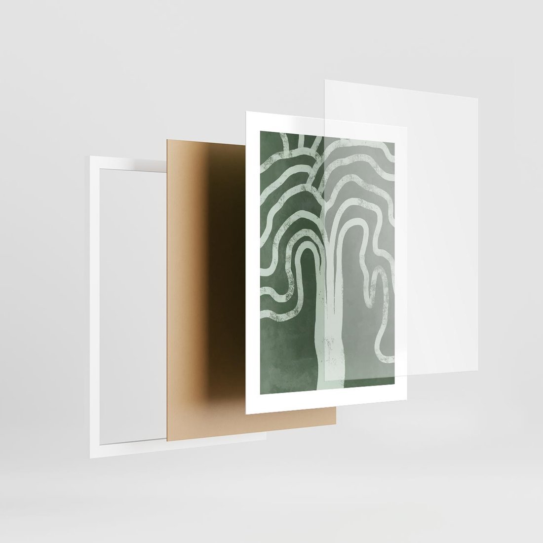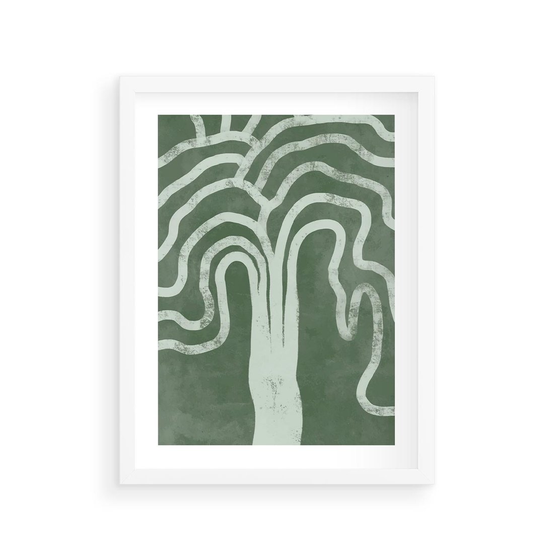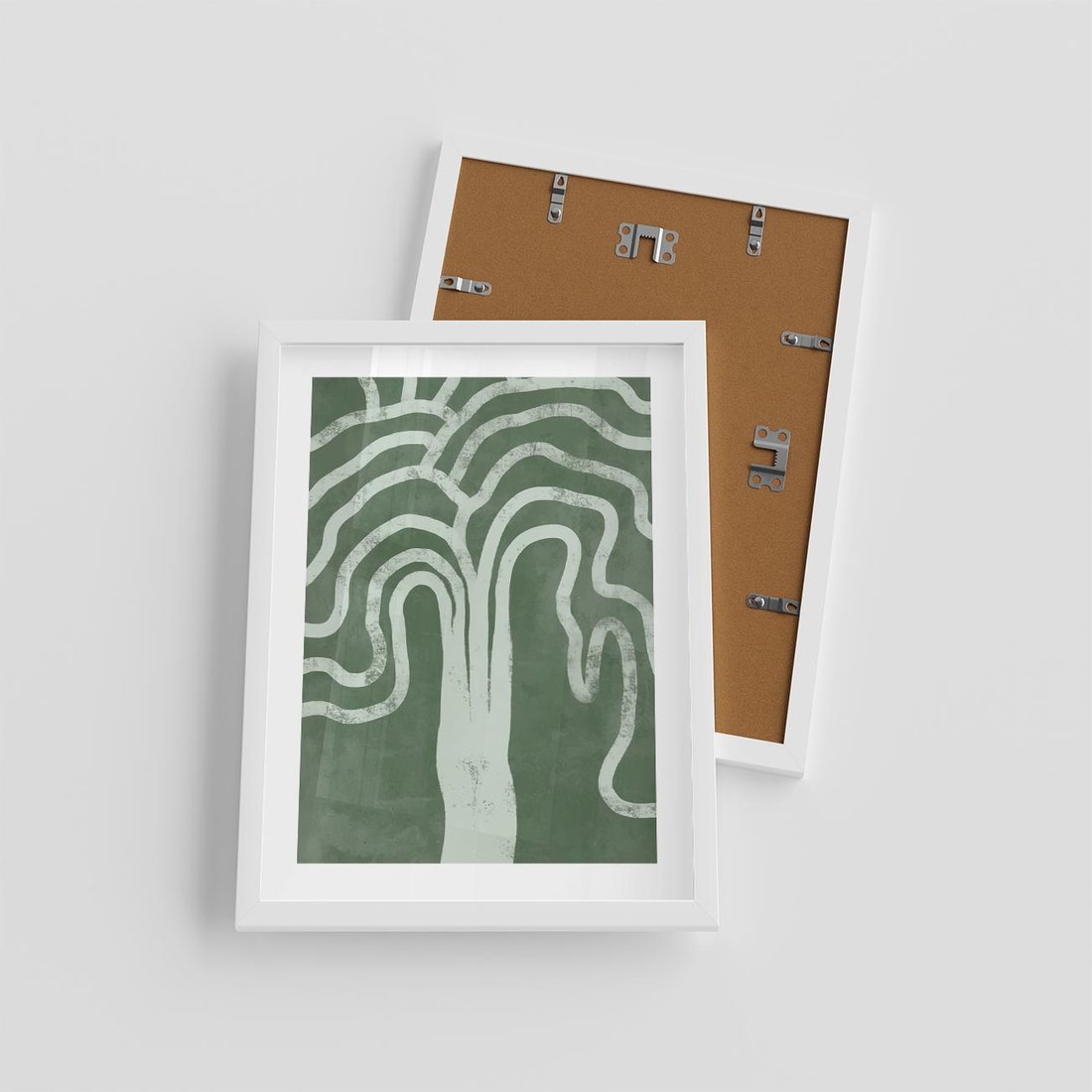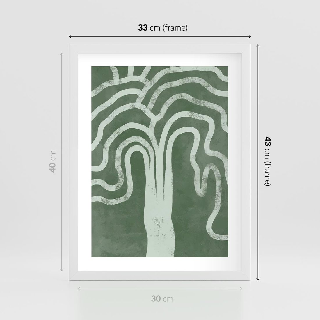 Plakat w ramie 30x40 - Inspirujące Zawiłości Zieleni - abstrakcyjny kształt, zielony plakat - rama biała
