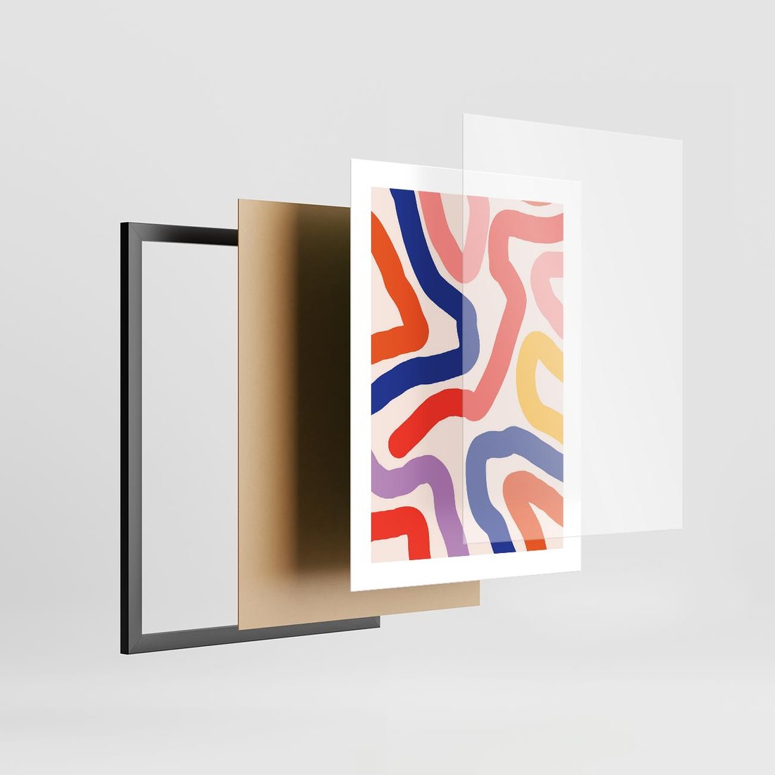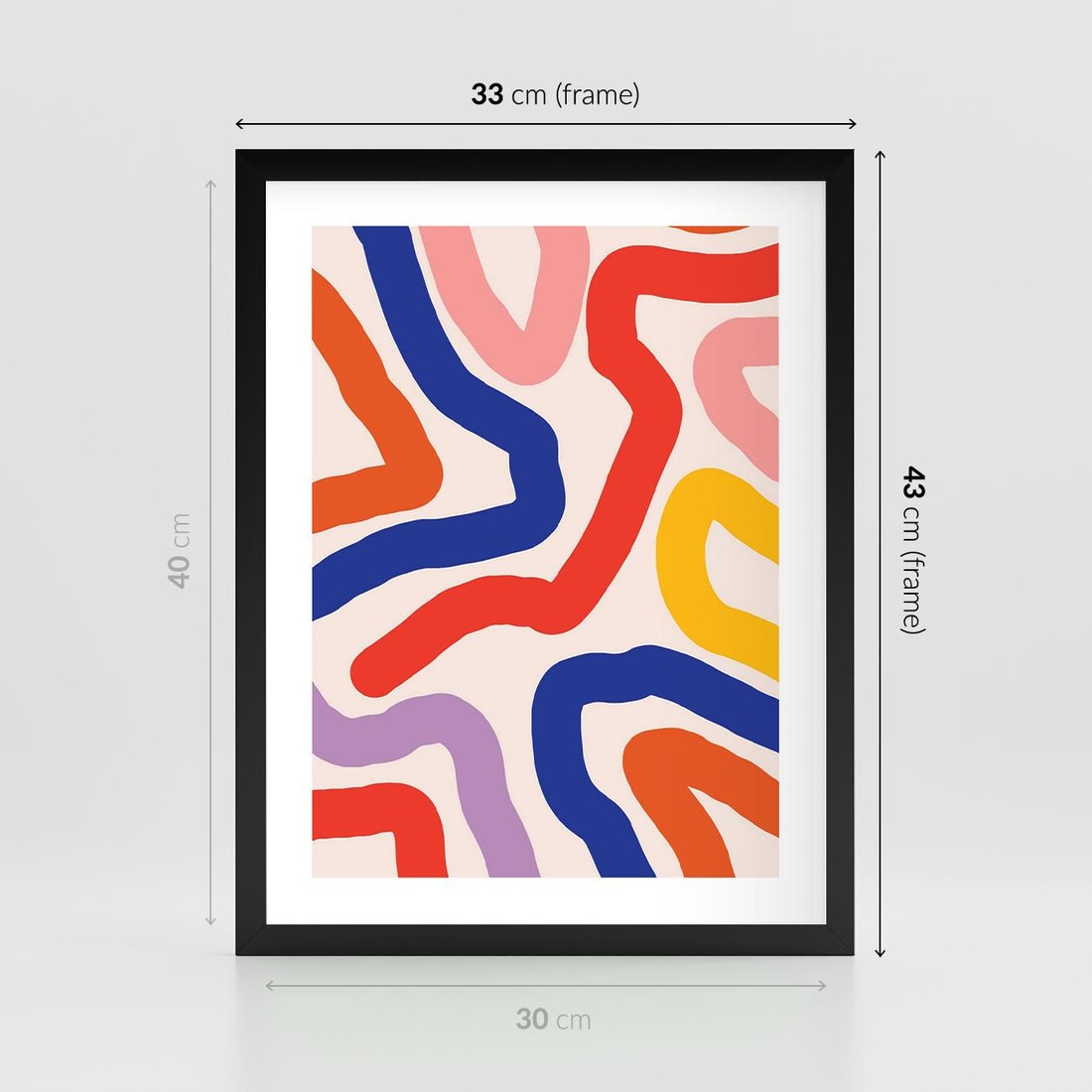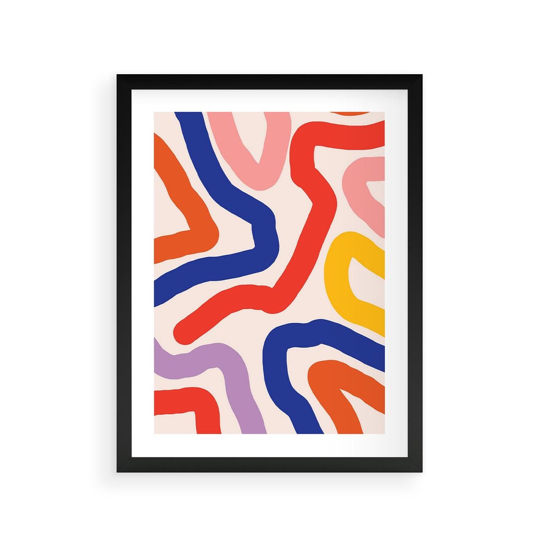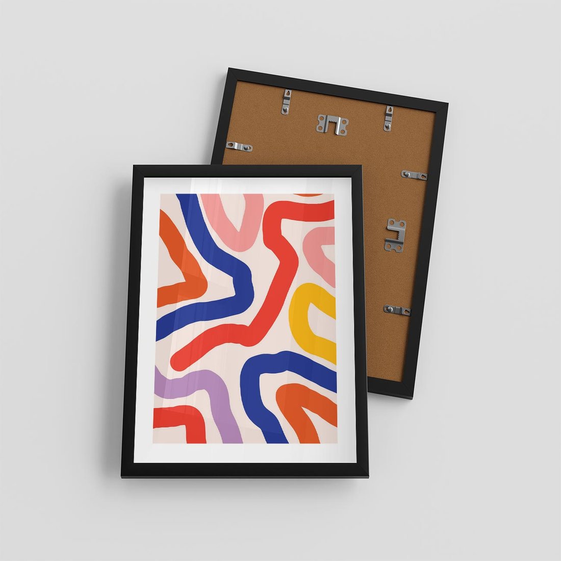 Plakat w ramie 30x40 - Intrygujące Widzenia - abstrakcyjny kolorowy obraz, kolorowe linie - rama czarna