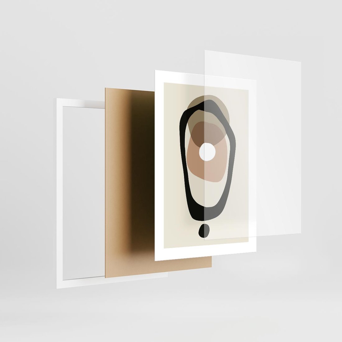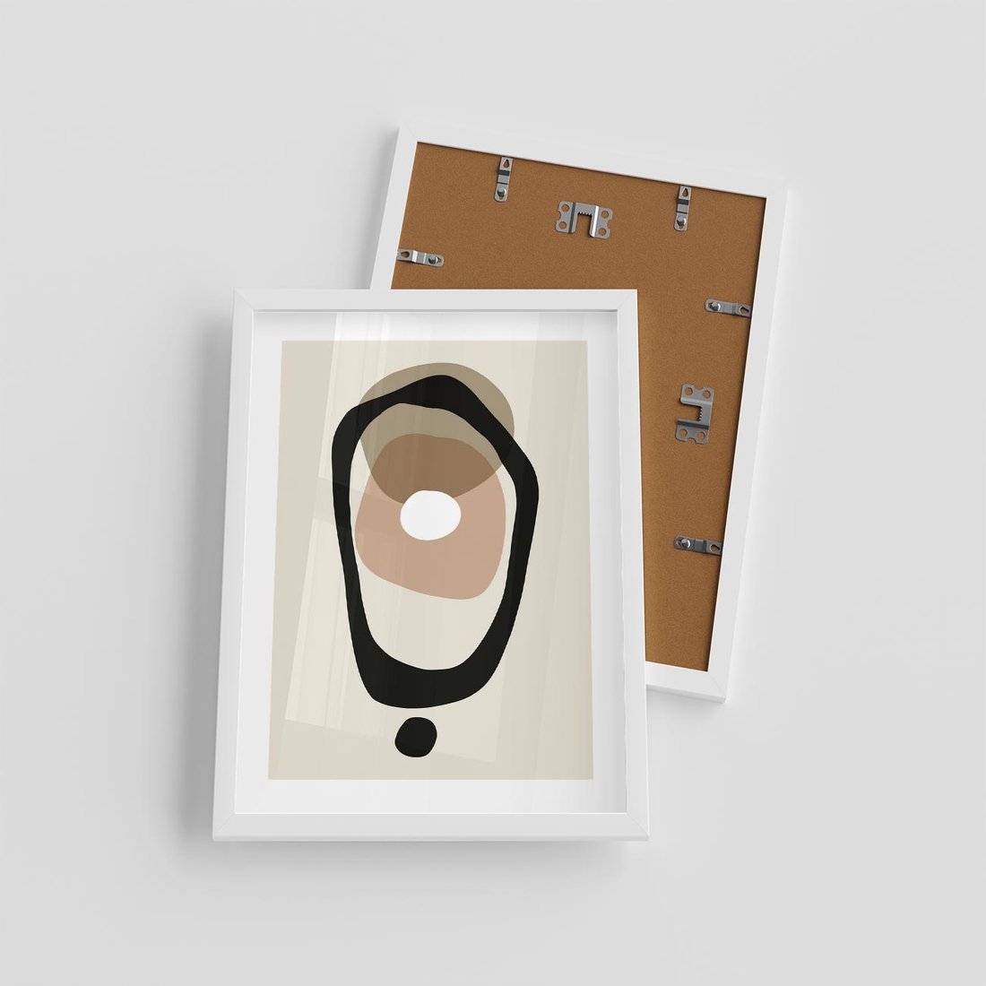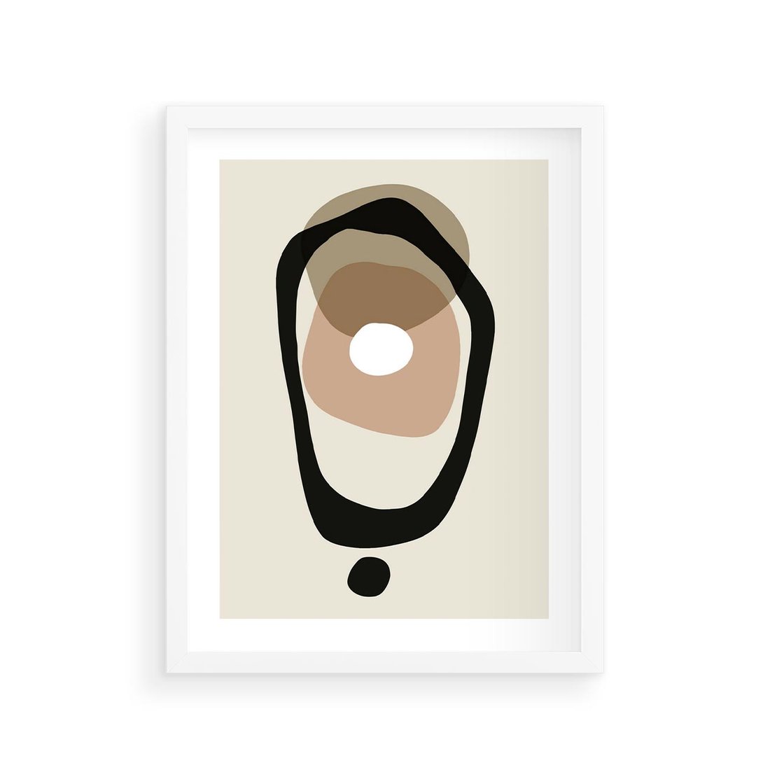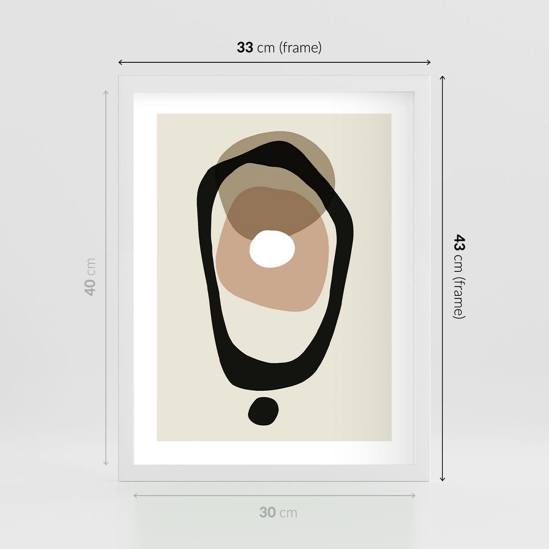 Plakat w ramie 30x40 - Intrygujące Zaskoczenia - beżowa abstrakcyjna kompozycja, czarny akcent - rama biała