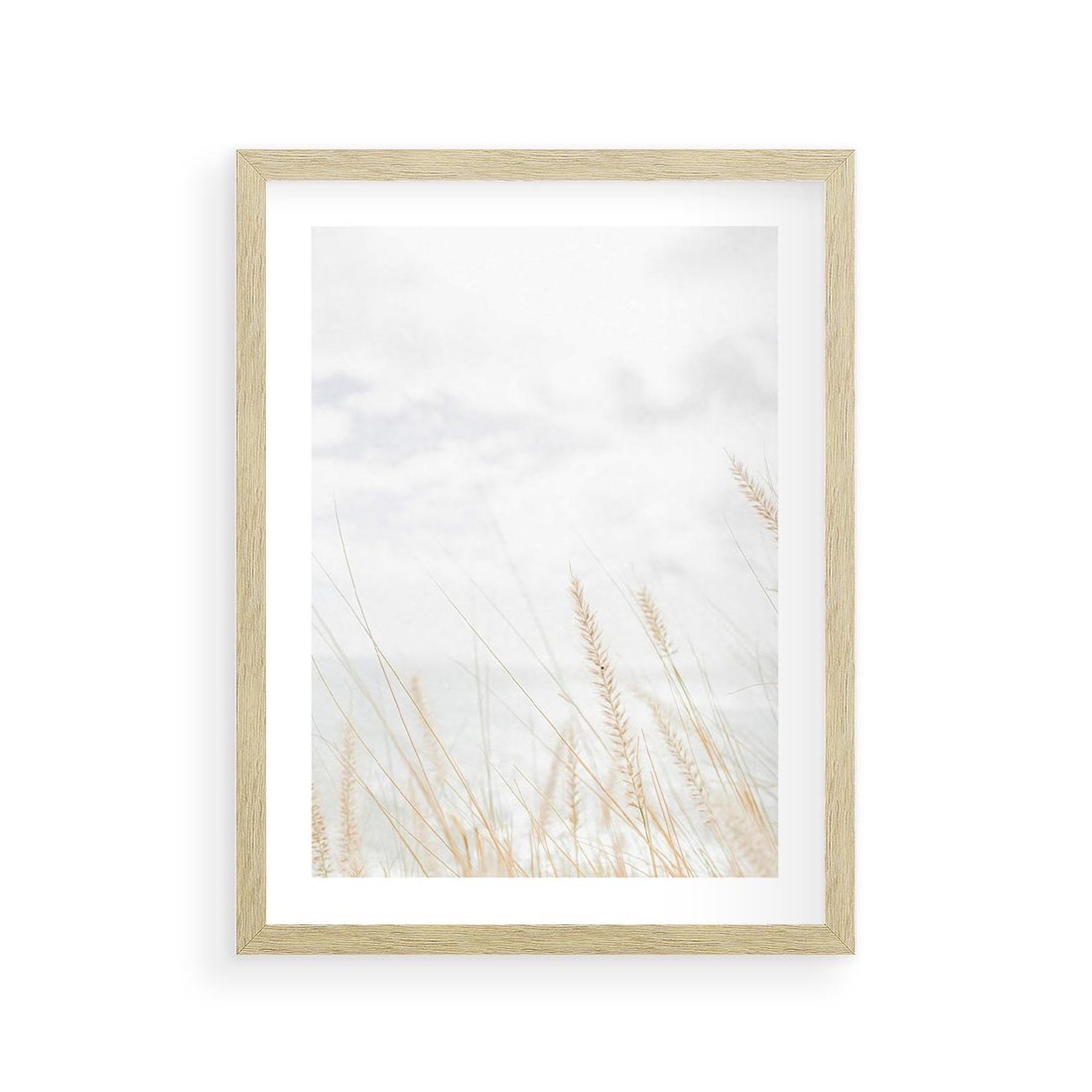 Plakat w ramie 30x40 - Jasna Delikatność: Fotografia Suchych Traw - suche trawy, jasna fotografia - rama drewno
