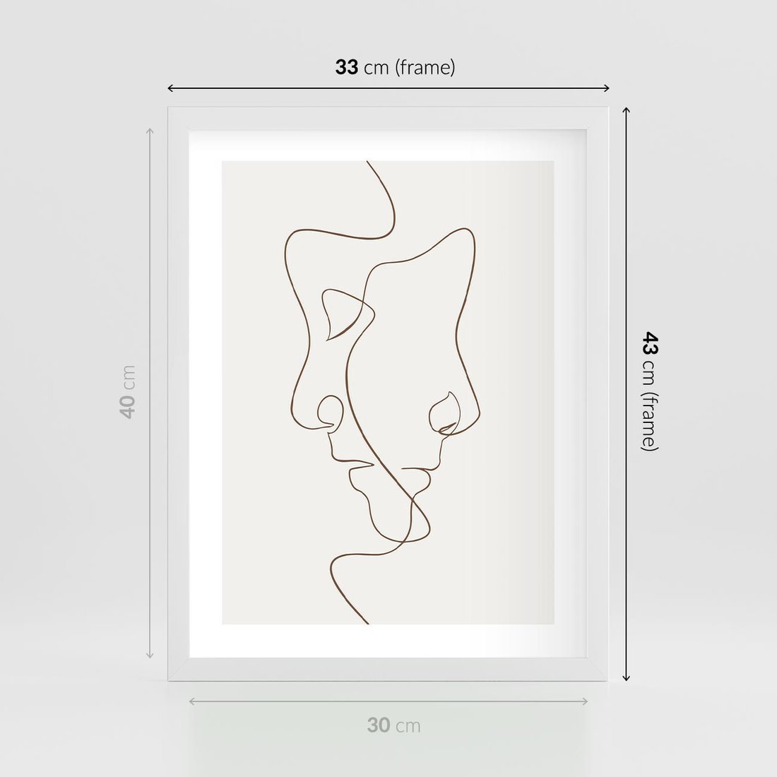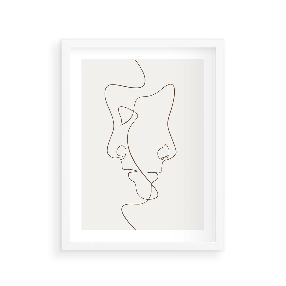 Plakat w ramie 30x40 - Jedna Linia, Dwie Twarze - minimalistyczny plakat, dwie twarze - rama biała