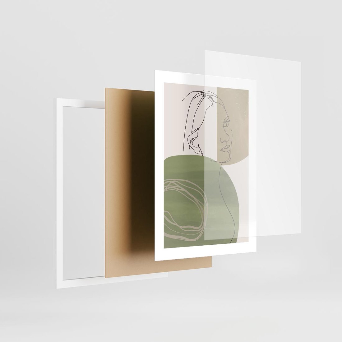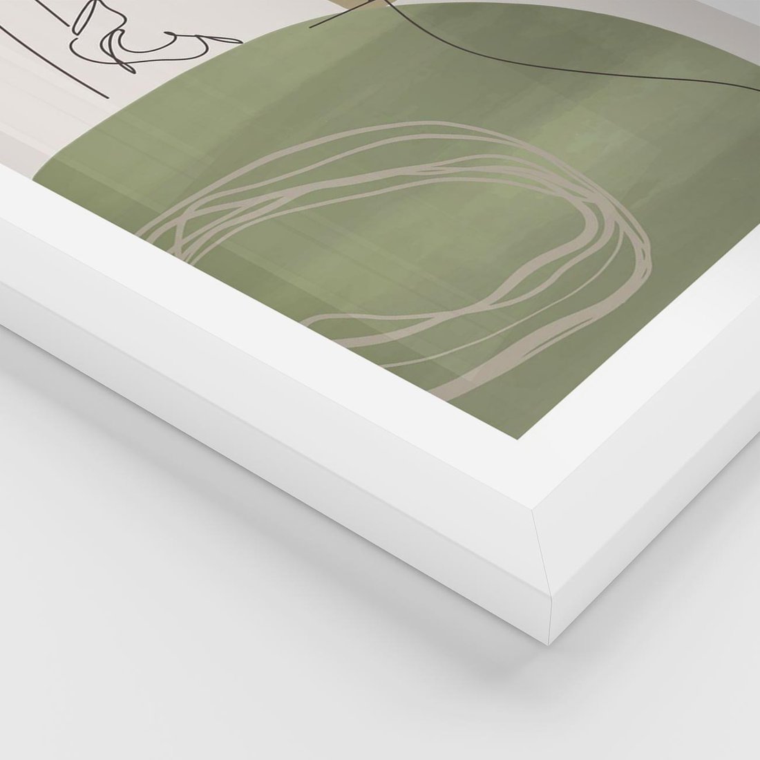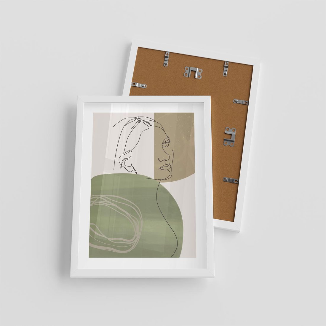 Plakat w ramie 30x40 - Jedna Linia, Wiele Emocji - akwarelowe plamy, na nich szkic postaci kobiety jedną linią - rama biała