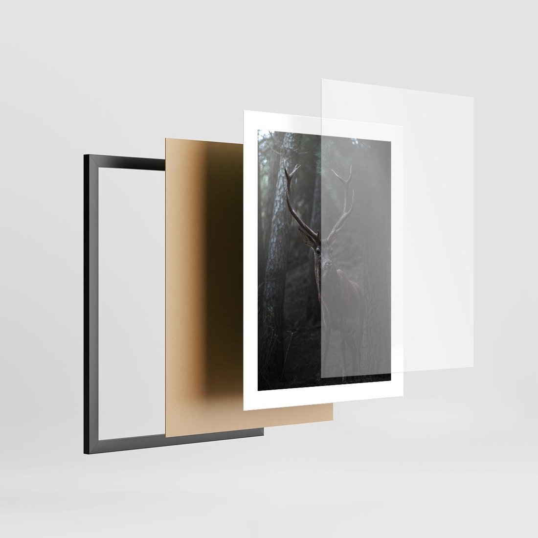 - Plakat w ramie 30x40 - Jeleń wśród lasu