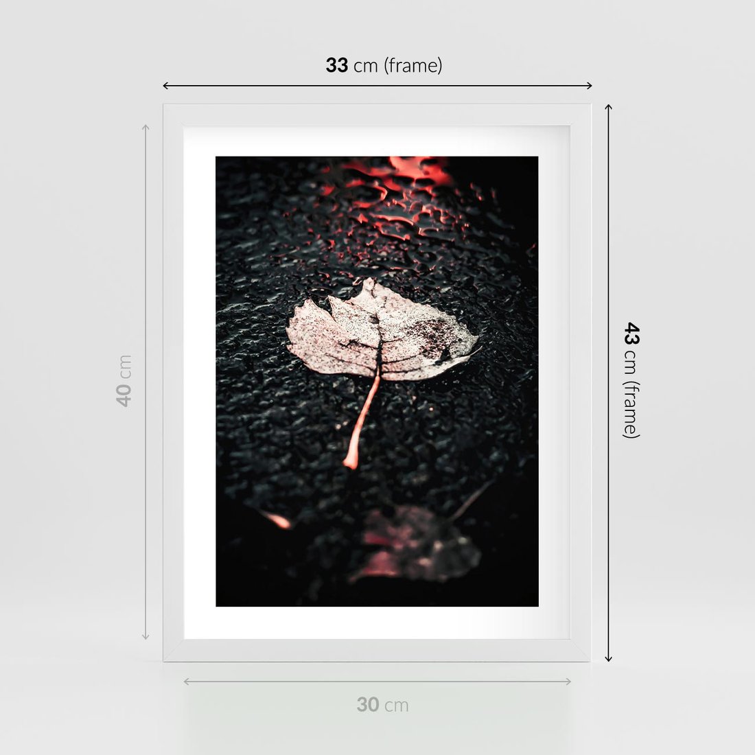 - Plakat w ramie 30x40 - Jesień w Detalu: Liść na Mokrej Drodze