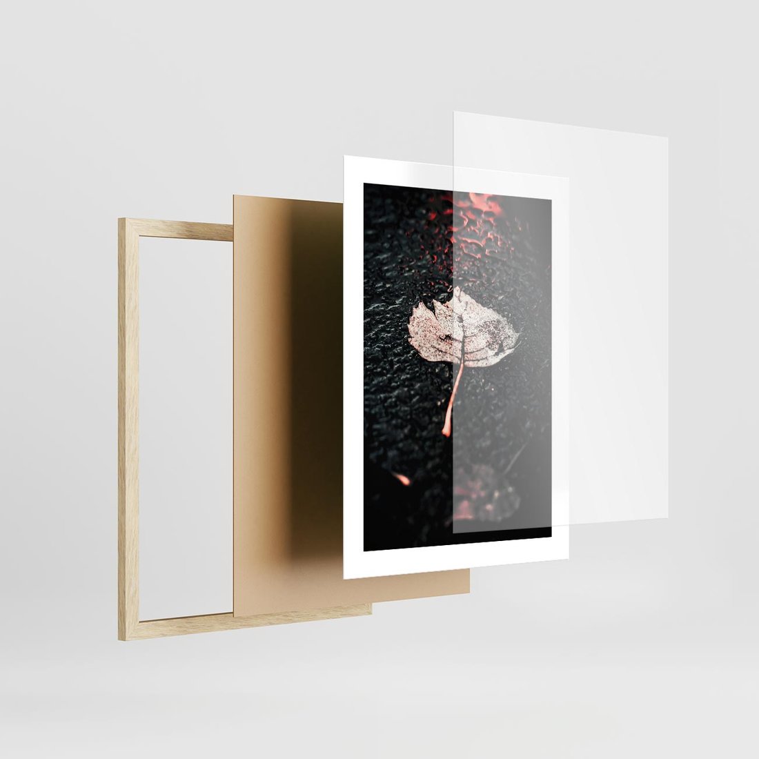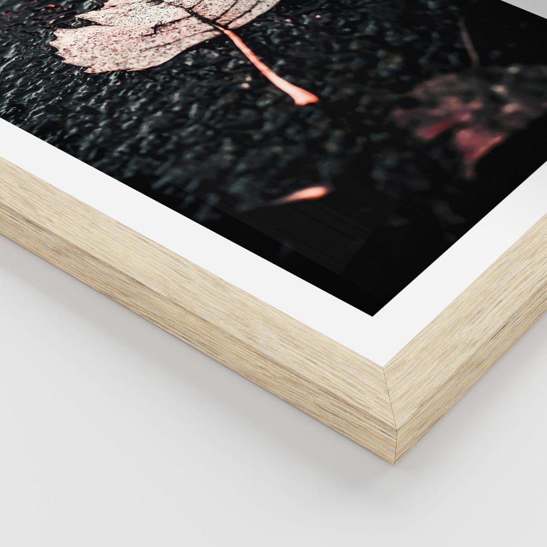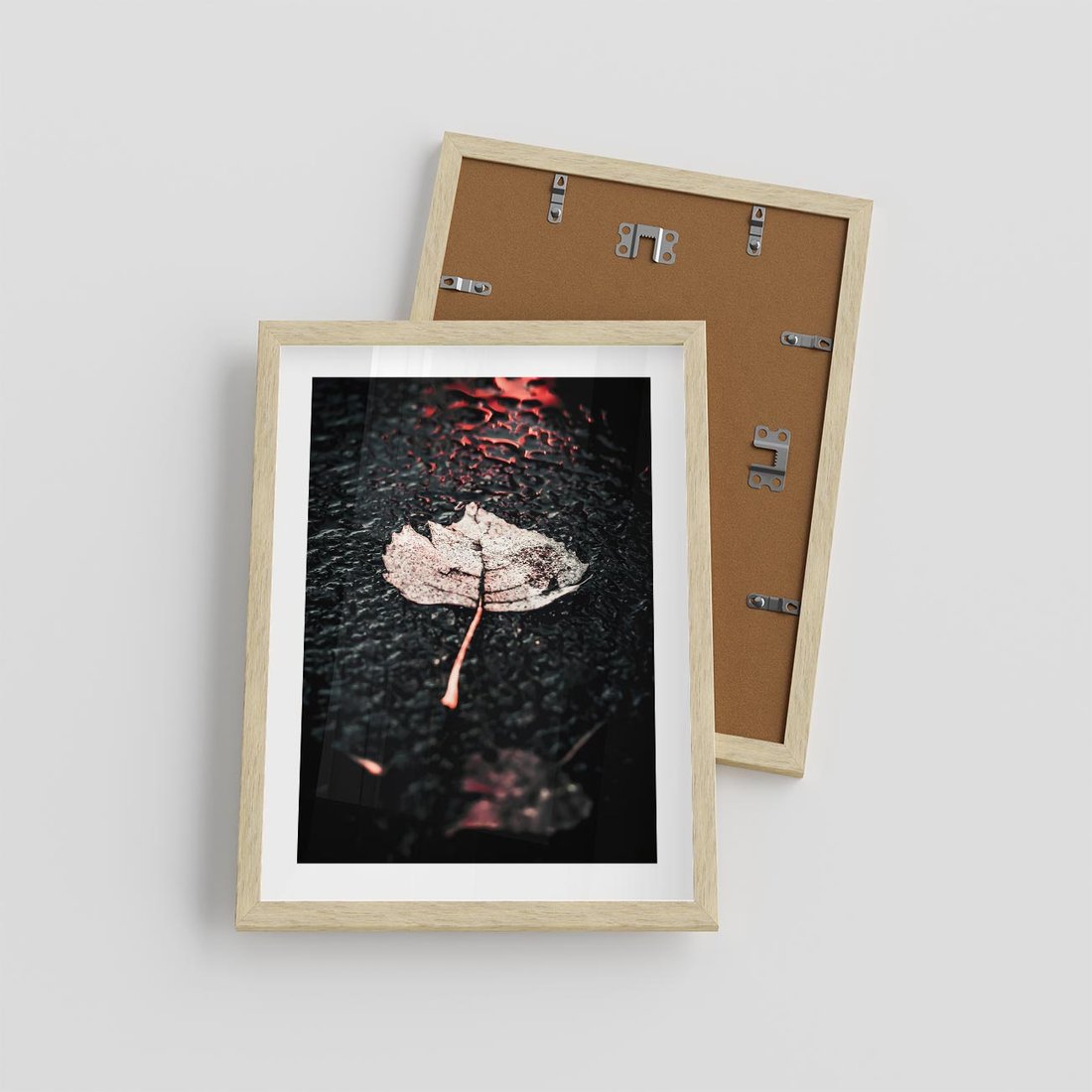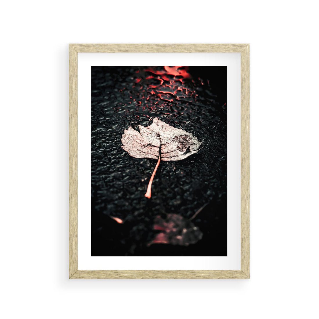 Plakat w ramie 30x40 - Jesień w Detalu: Liść na Mokrej Drodze - liść, jesień - rama drewno
