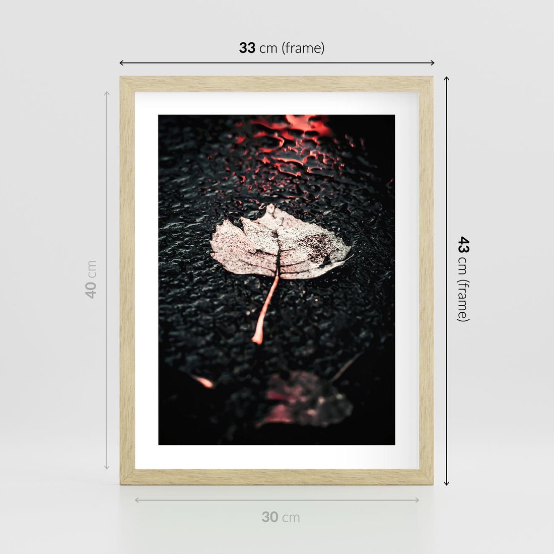 - Plakat w ramie 30x40 - Jesień w Detalu: Liść na Mokrej Drodze