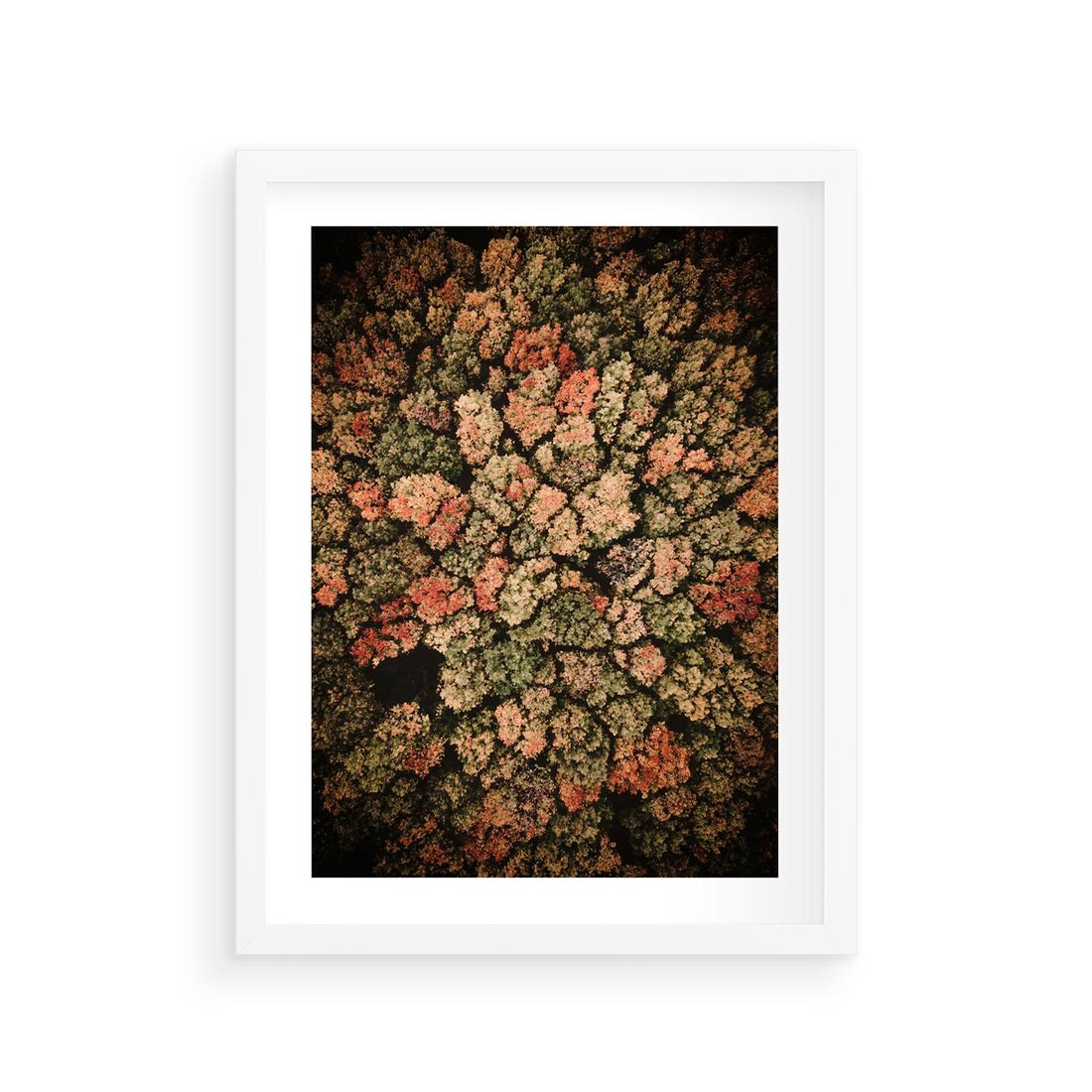 Plakat w ramie 30x40 - Jesień z Lotu Ptaka: Malowniczy Las - las jesienią z lotu ptaka - rama biała