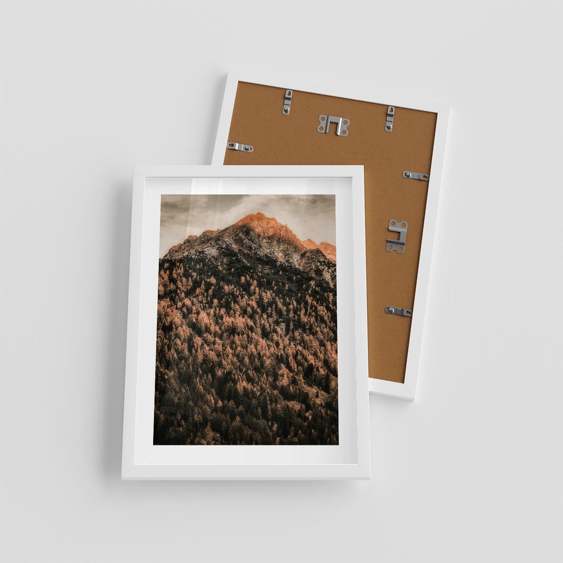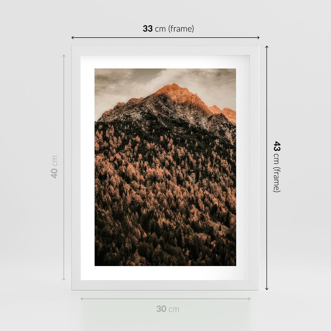 Plakat w ramie 30x40 - Jesienna Godzina w Górach - góry, las w górach - rama biała