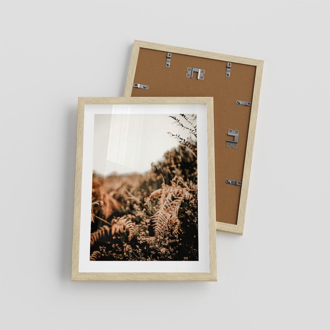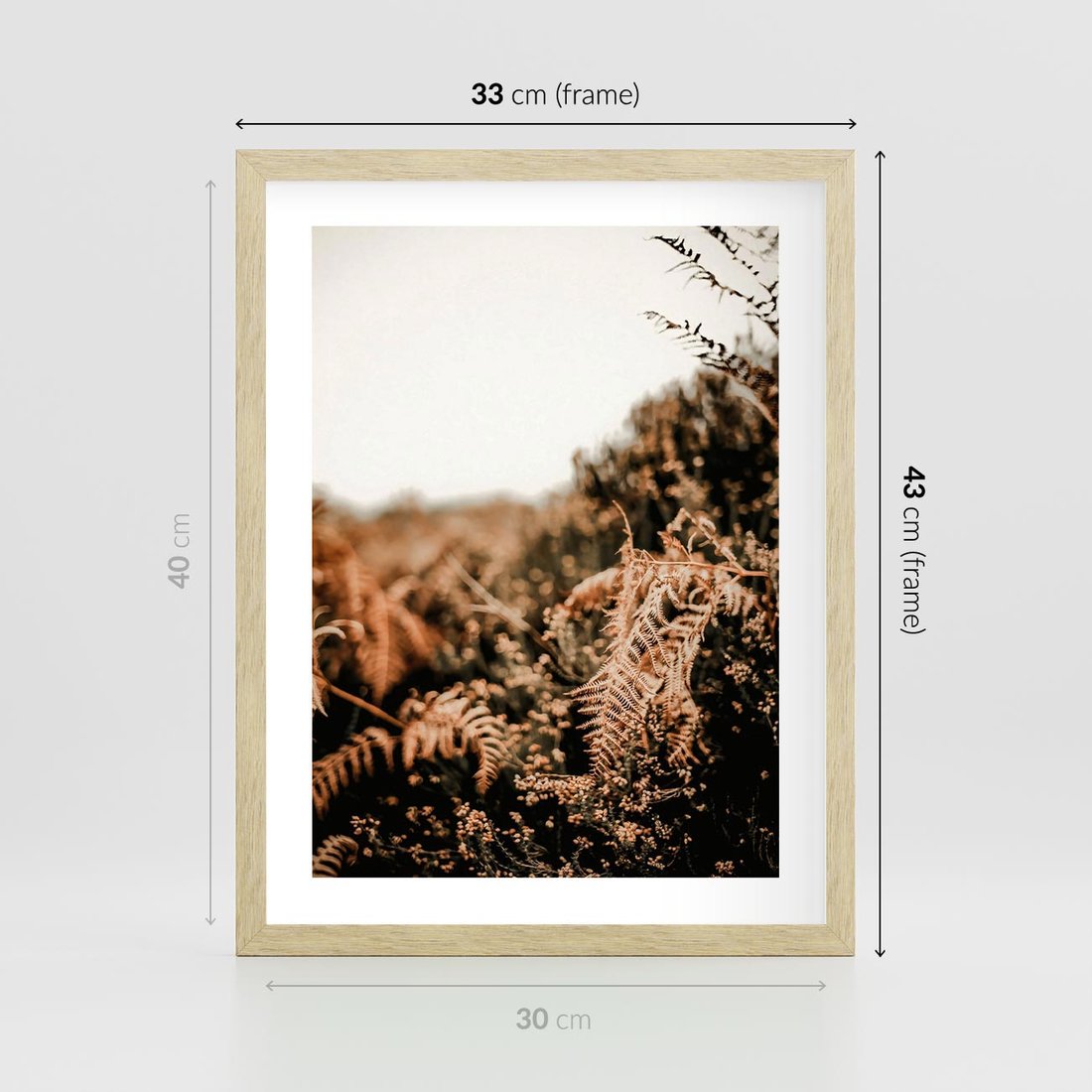 Plakat w ramie 30x40 - Jesienna Harmonia - suche paprocie, jesienny krajobraz - rama drewno