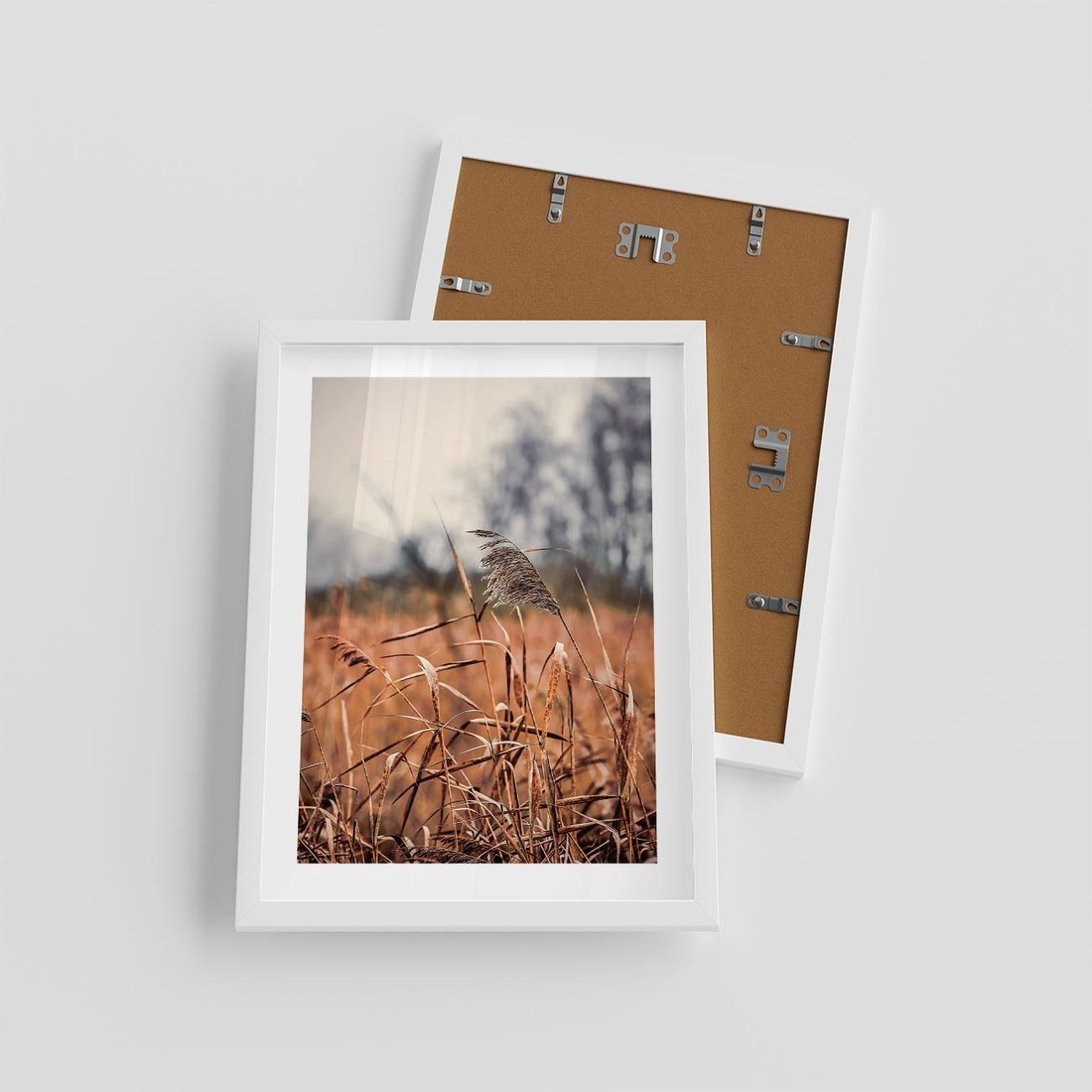 Plakat w ramie 30x40 - Jesienna Melancholia - suche trawy, jesień - rama biała