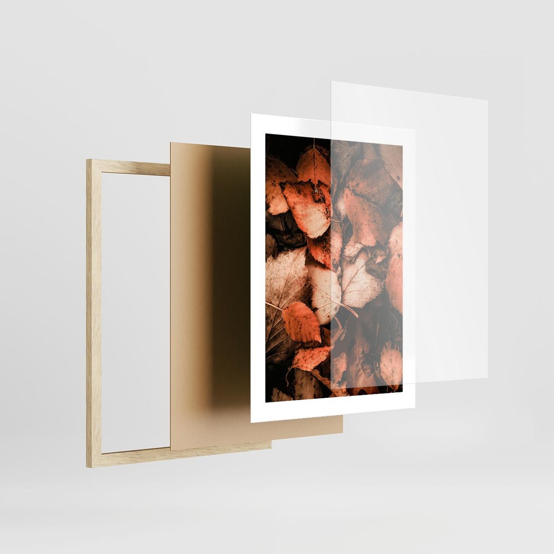 Plakat w ramie 30x40 - Jesienna Paleta - liście, jesień - rama drewno