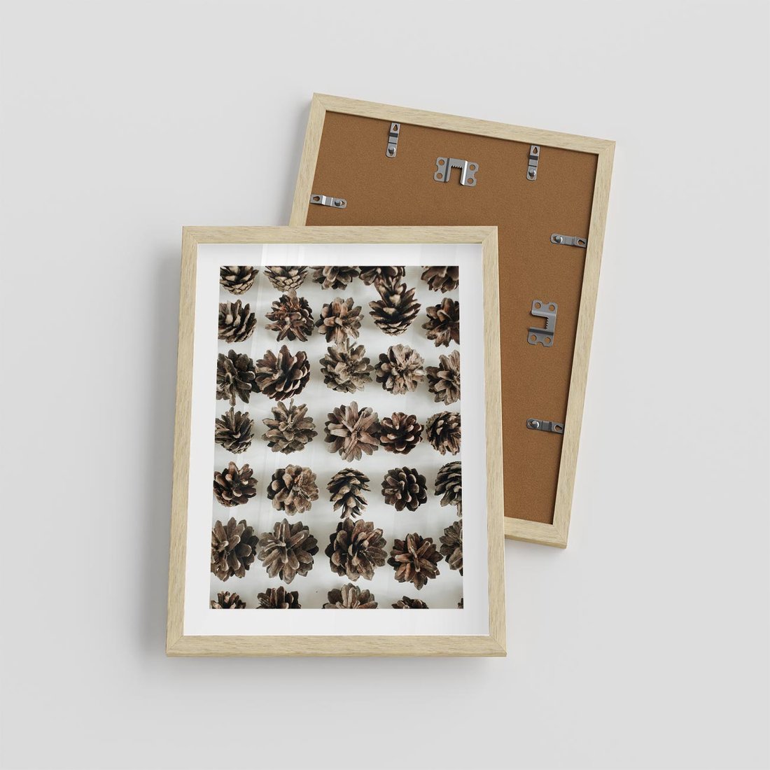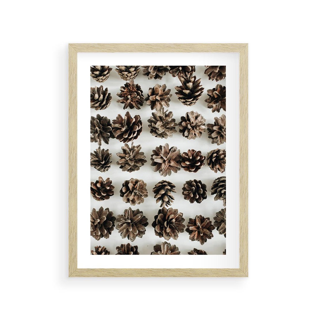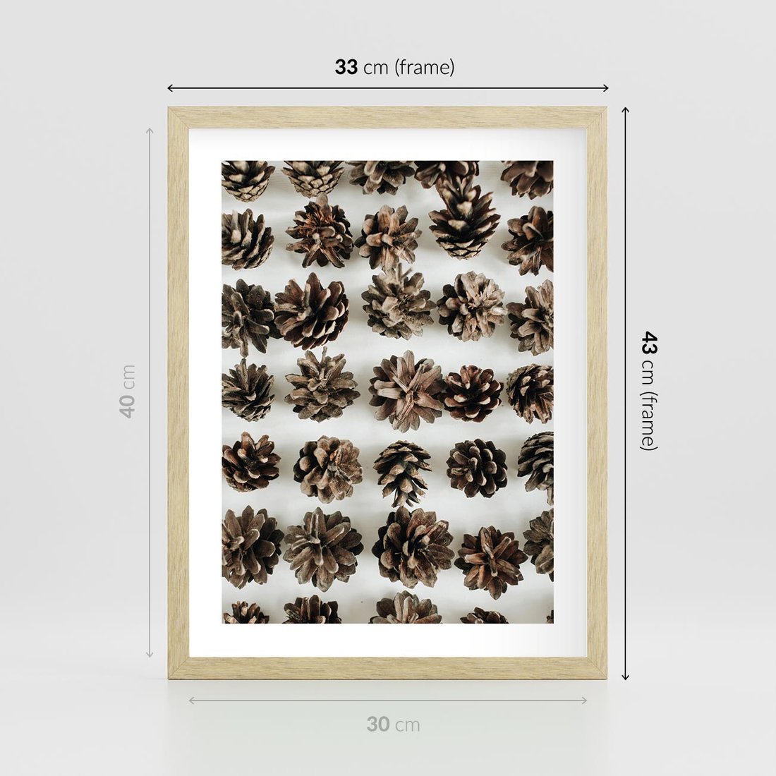 Plakat w ramie 30x40 - Jesienna Tekstura - kompozycja z suchych szyszek, jesienne szyszki - rama drewno