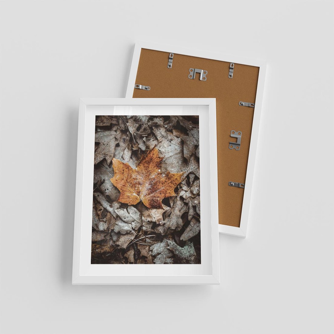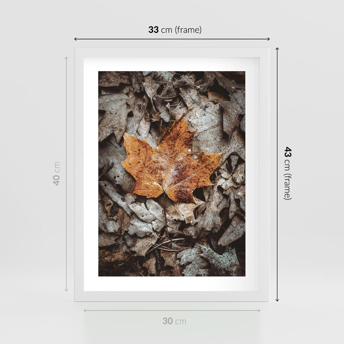 Plakat w ramie 30x40 - Jesienne Czarowanie - suchy liść, żółty - rama biała