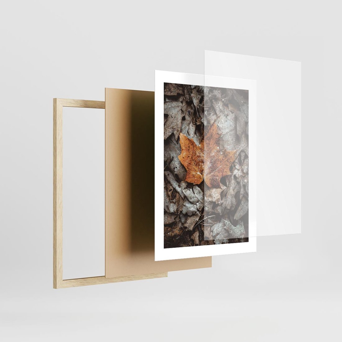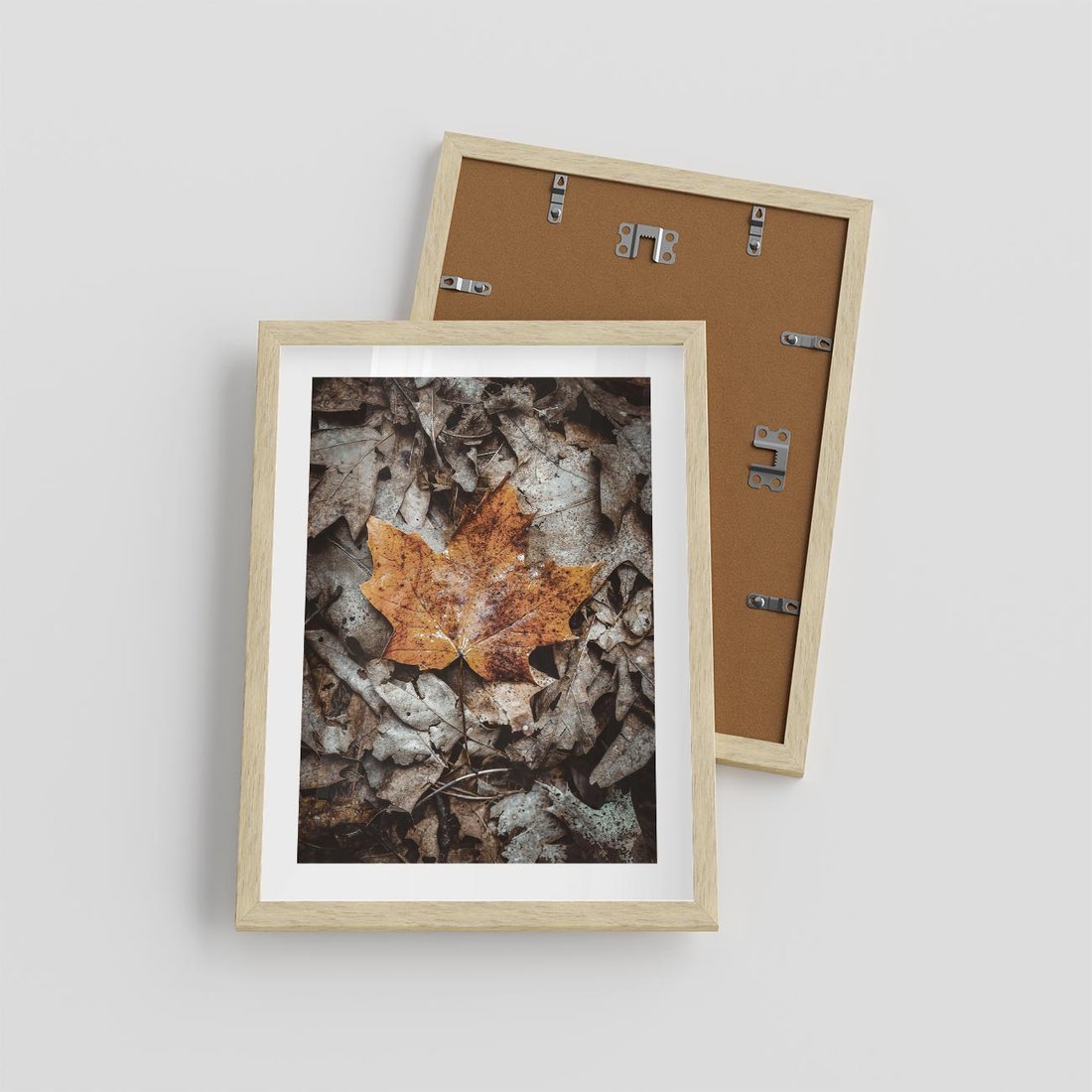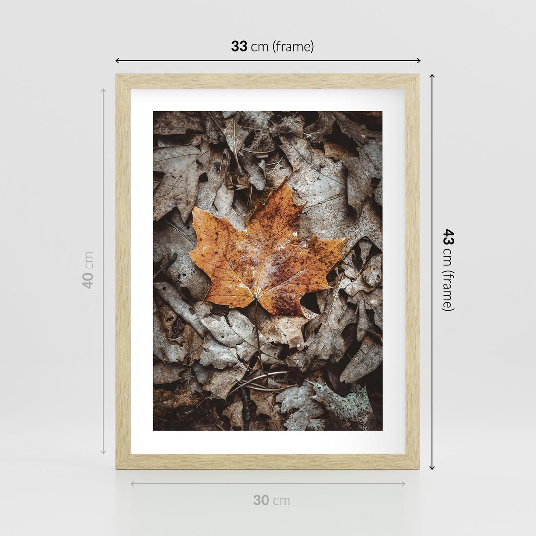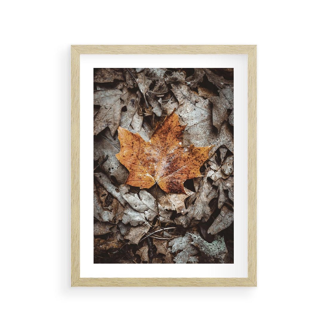 Plakat w ramie 30x40 - Jesienne Czarowanie - suchy liść, żółty - rama drewno