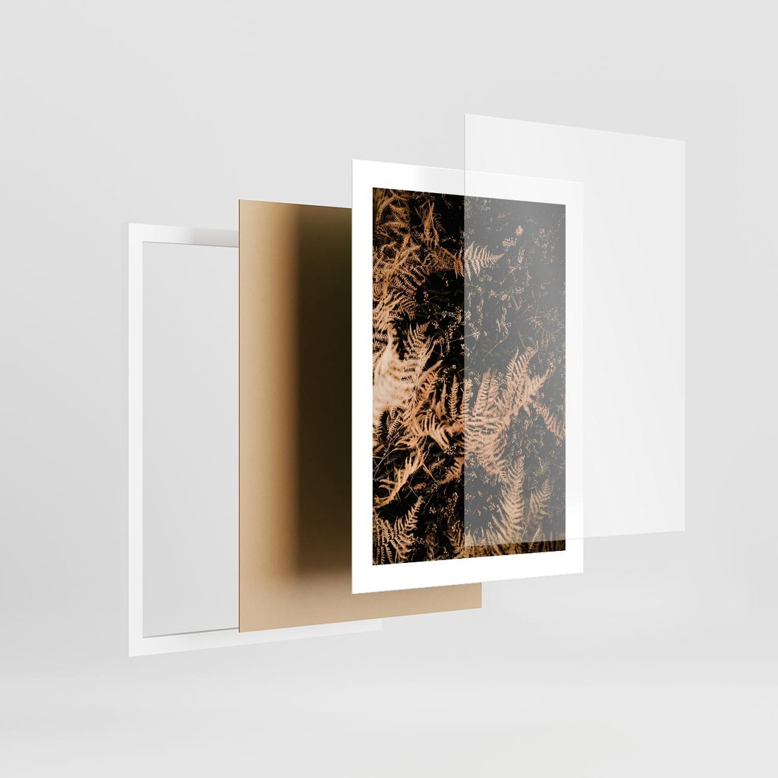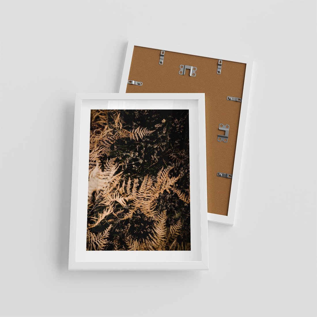 Plakat w ramie 30x40 - Jesienne Paprocie: Kolorowa Paleta Natury - paprocie, jesień - rama biała