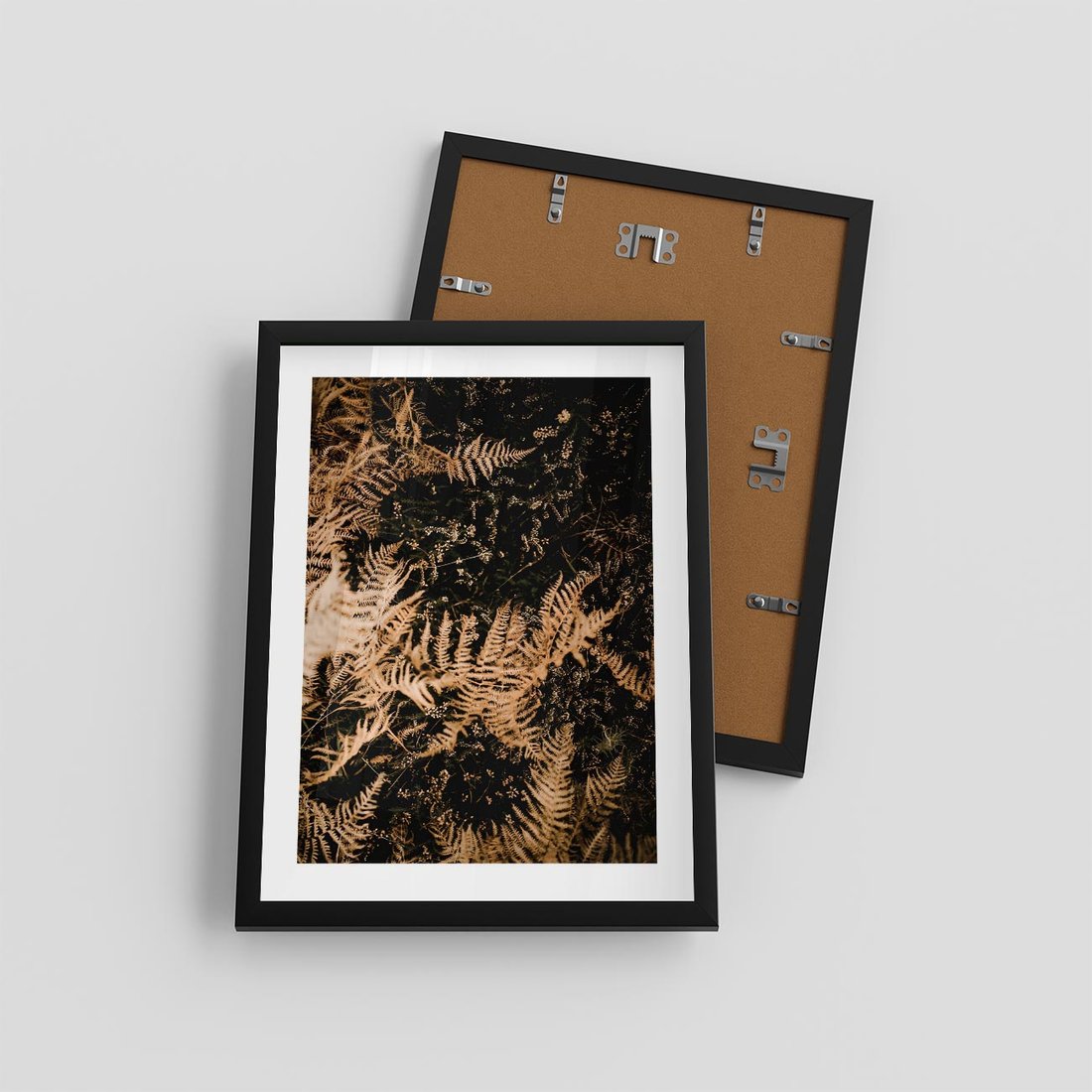 Plakat w ramie 30x40 - Jesienne Paprocie: Kolorowa Paleta Natury - paprocie, jesień - rama czarna