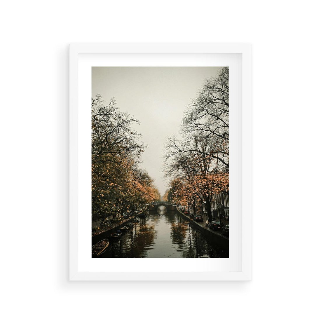 Plakat w ramie 30x40 - Jesienne Spacerki po Holenderskich Kanałach - kanały, Holandia - rama biała