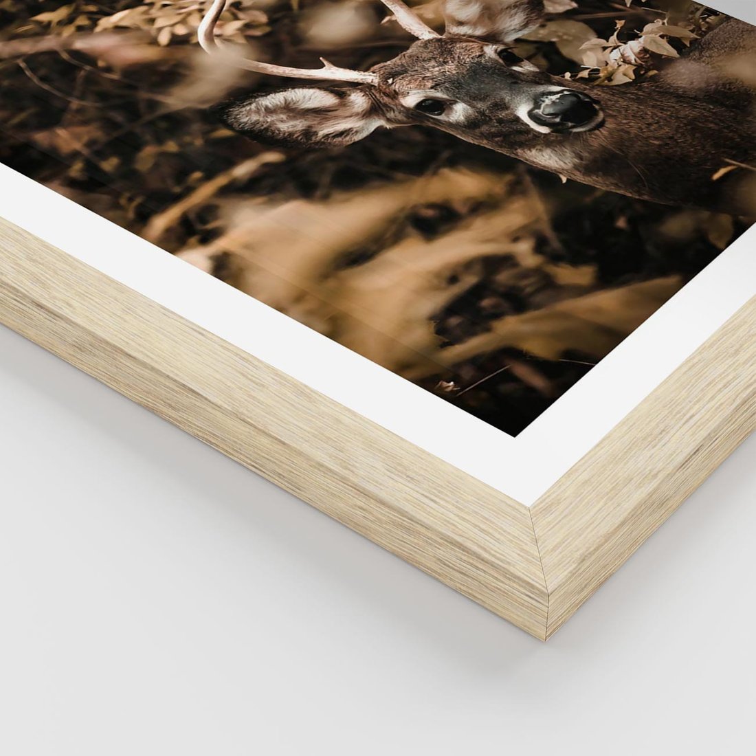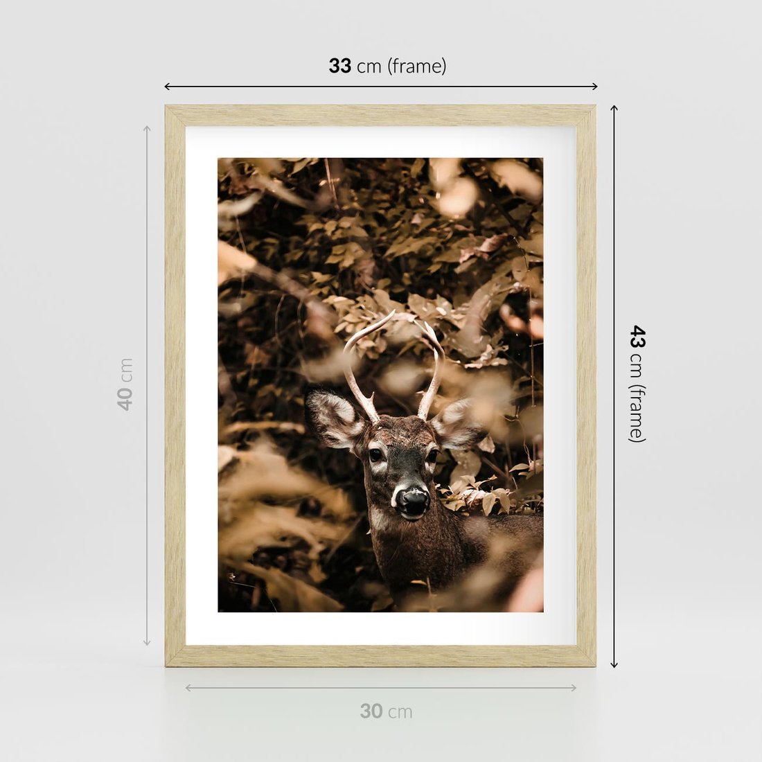 Plakat w ramie 30x40 - Jesienny Jeleń w Lesie - jeleń, w lesie - rama drewno