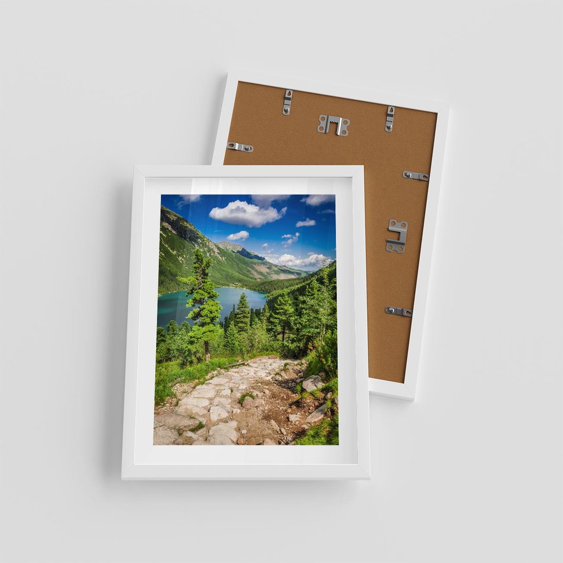 Plakat w ramie 30x40 - Jezioro górskie: harmonia natury - jezioro, góry - rama biała