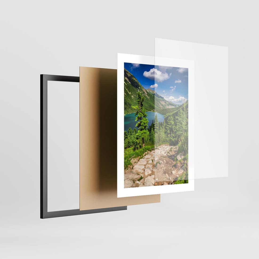 Plakat w ramie 30x40 - Jezioro górskie: harmonia natury - jezioro, góry - rama czarna