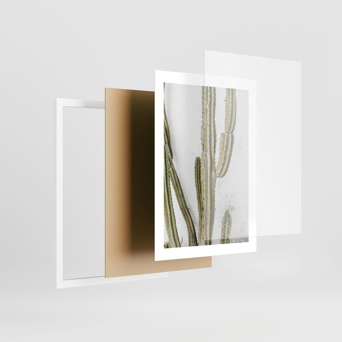 Obraz przedstawia minimalistyczną aranżację z kaktusem jako głównym elementem. Ta kompozycja wpisuje się w styl boho i minimalistyczne wnętrza, dodając im subtelnego egzotycznego uroku.