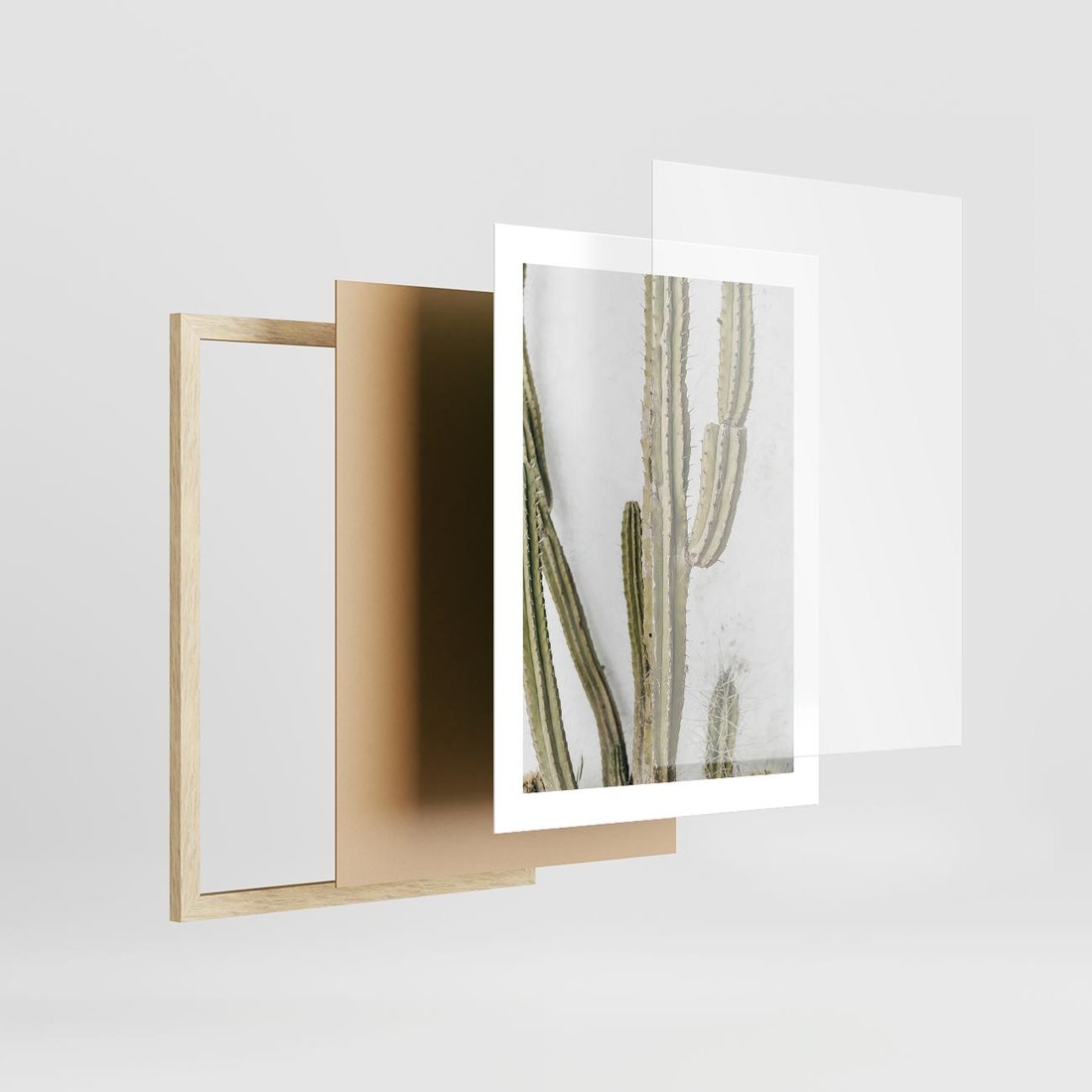 Obraz przedstawia minimalistyczną aranżację z kaktusem jako głównym elementem. Ta kompozycja wpisuje się w styl boho i minimalistyczne wnętrza, dodając im subtelnego egzotycznego uroku.