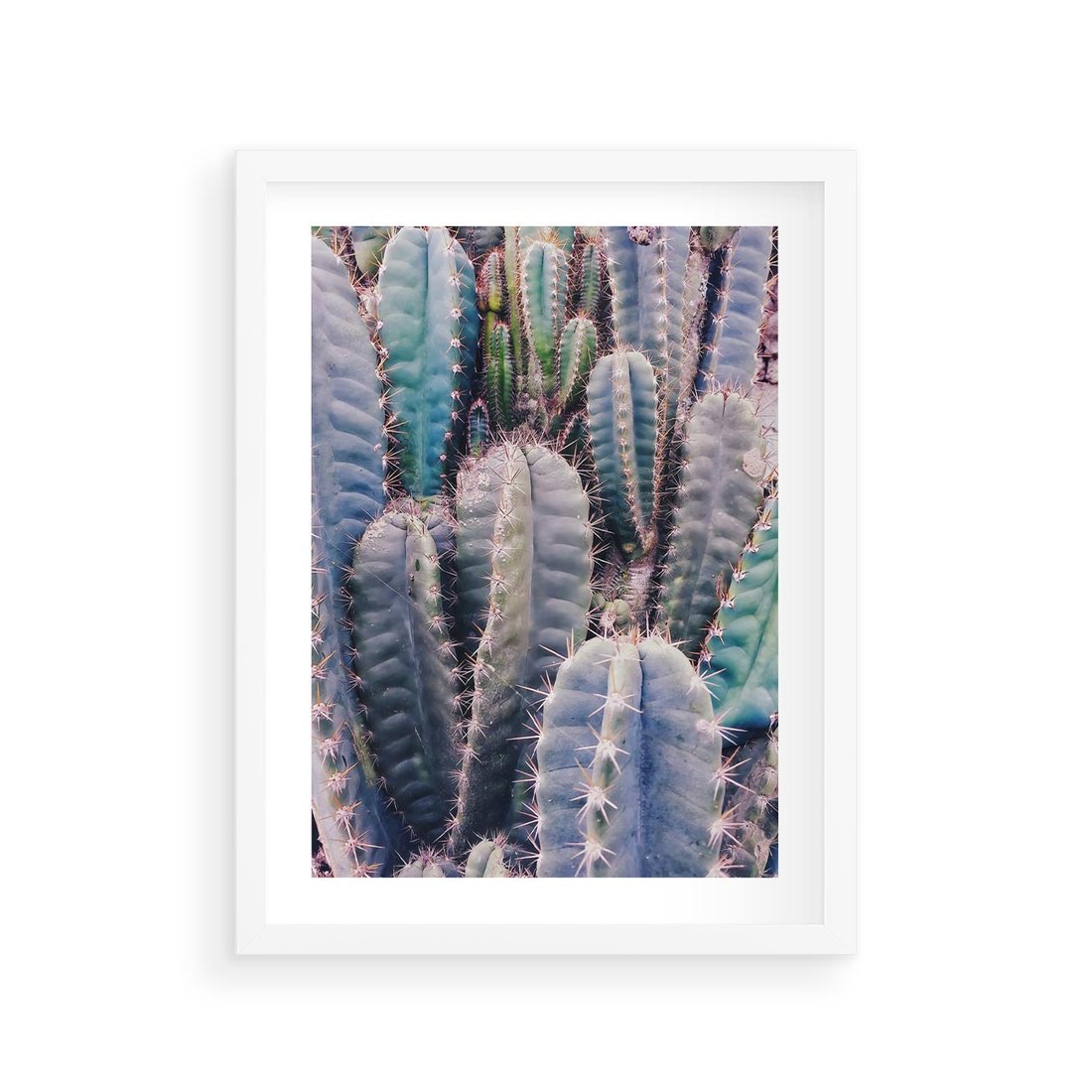 Plakat w ramie 30x40 - Kaktusowy Raj - kaktusy, dużo kaktusów - rama biała