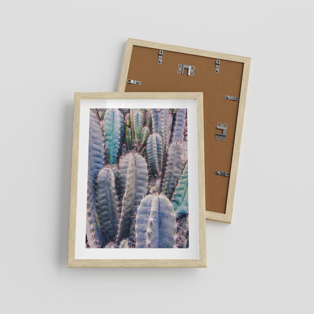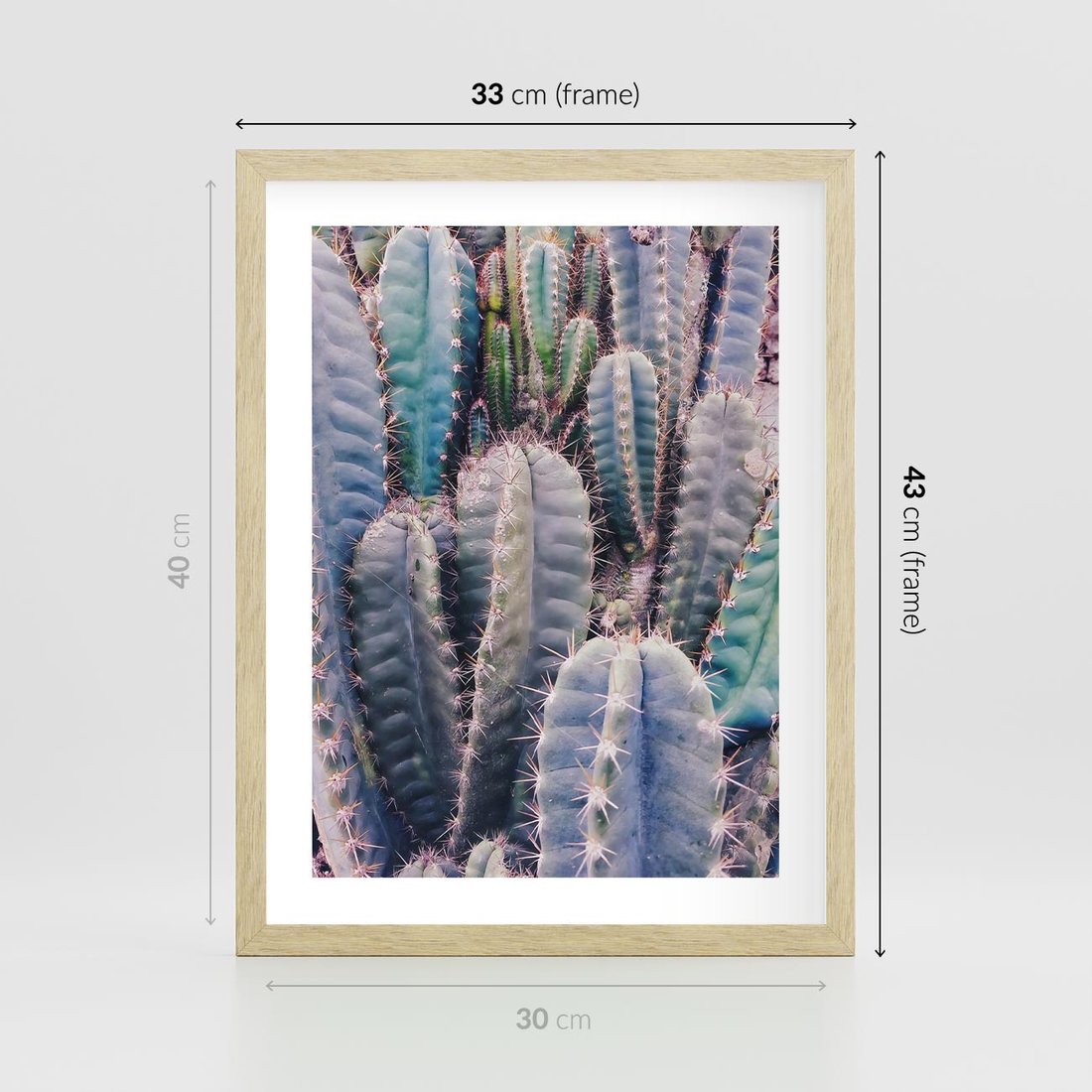 Plakat w ramie 30x40 - Kaktusowy Raj - kaktusy, dużo kaktusów - rama drewno