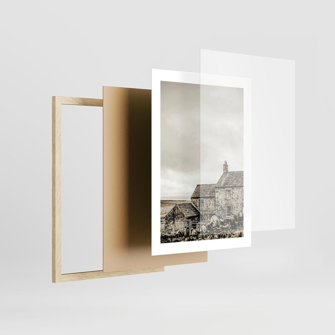 Plakat w ramie 30x40 - Kamienny Dom w Odcieniach Sepii - stary kamienny dom, odcienie sepii - rama drewno