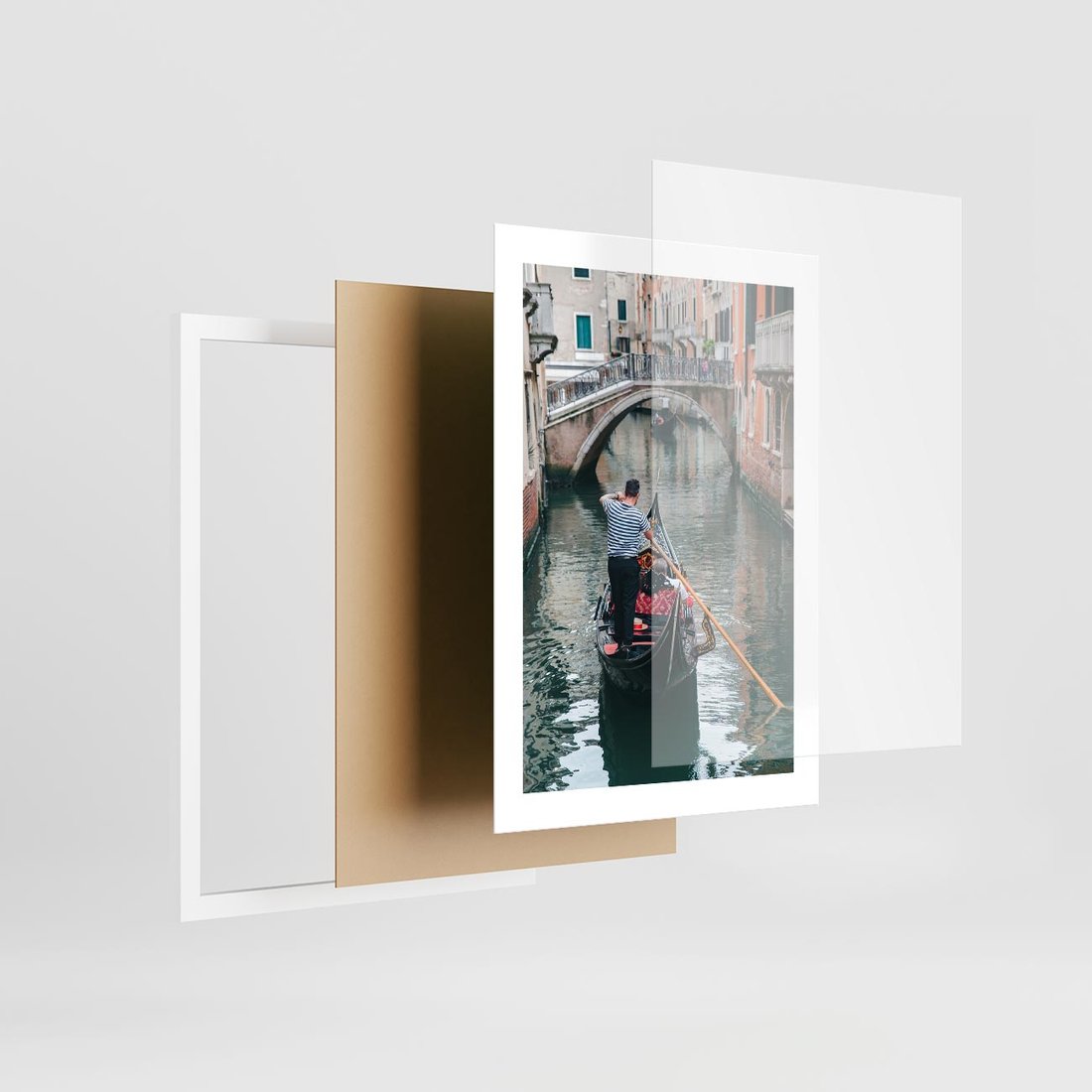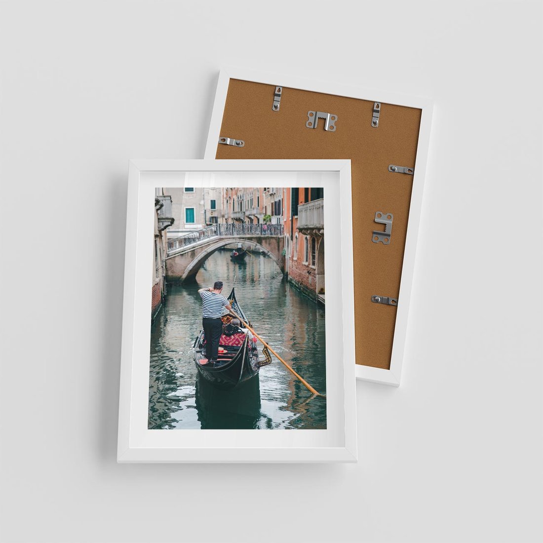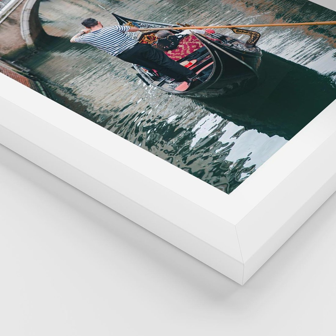 Plakat w ramie 30x40 - Kanały Wenecji - gondola, Wenecja - rama biała