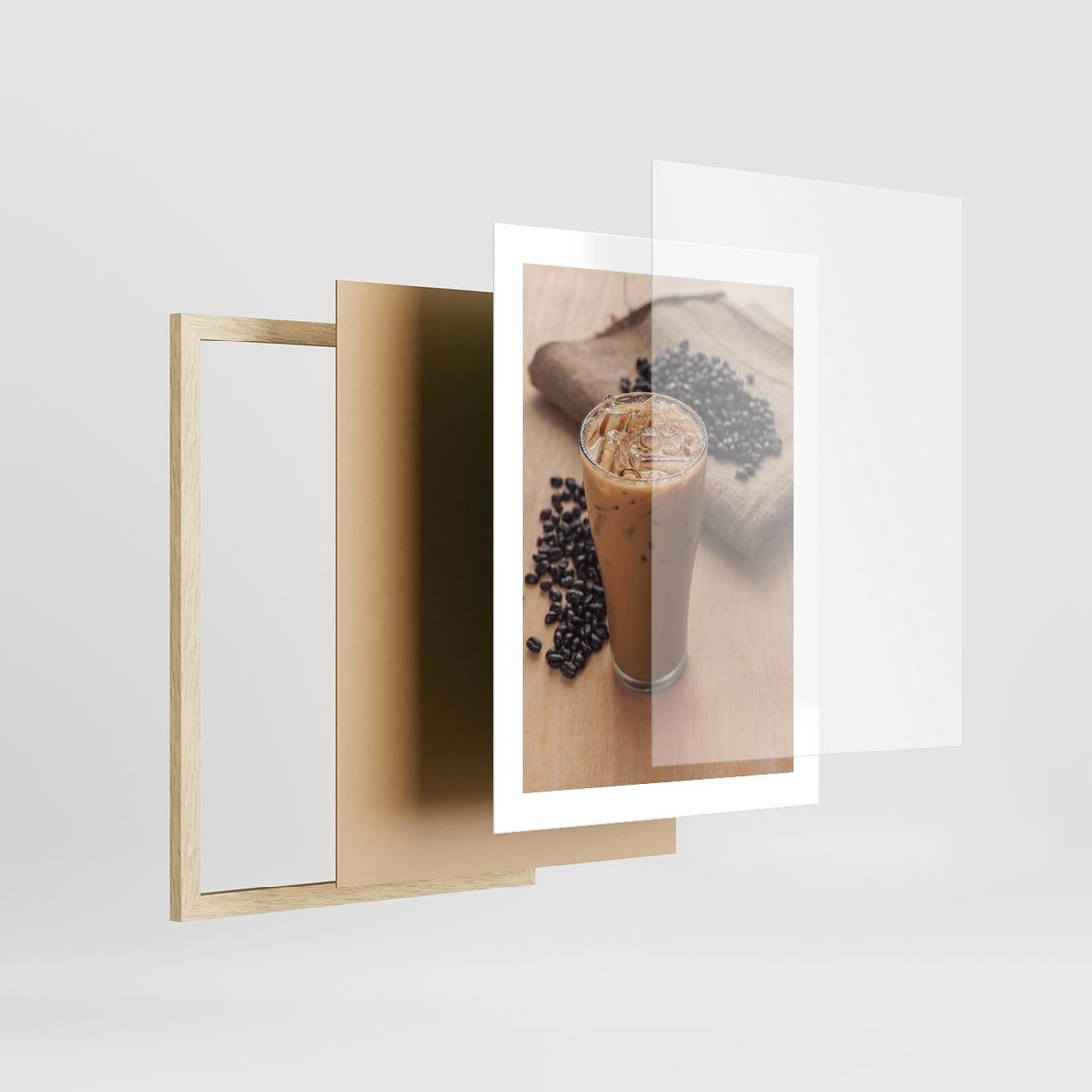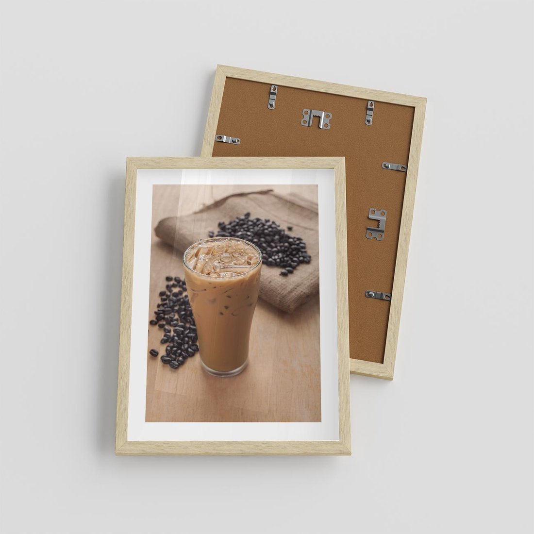 Plakat w ramie 30x40 - Kawa ice coffee: orzeźwiający napój - kawa, ice - rama drewno