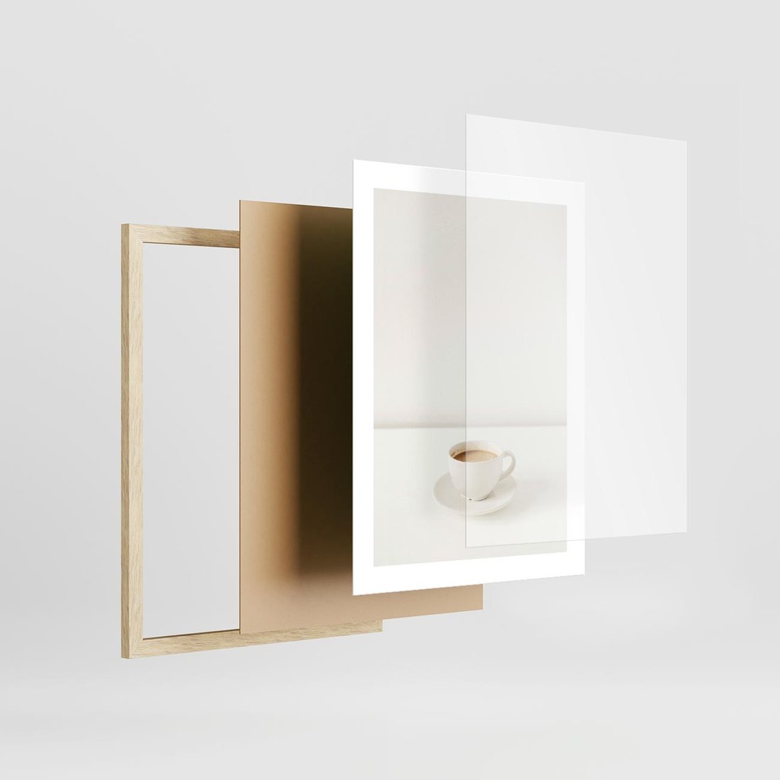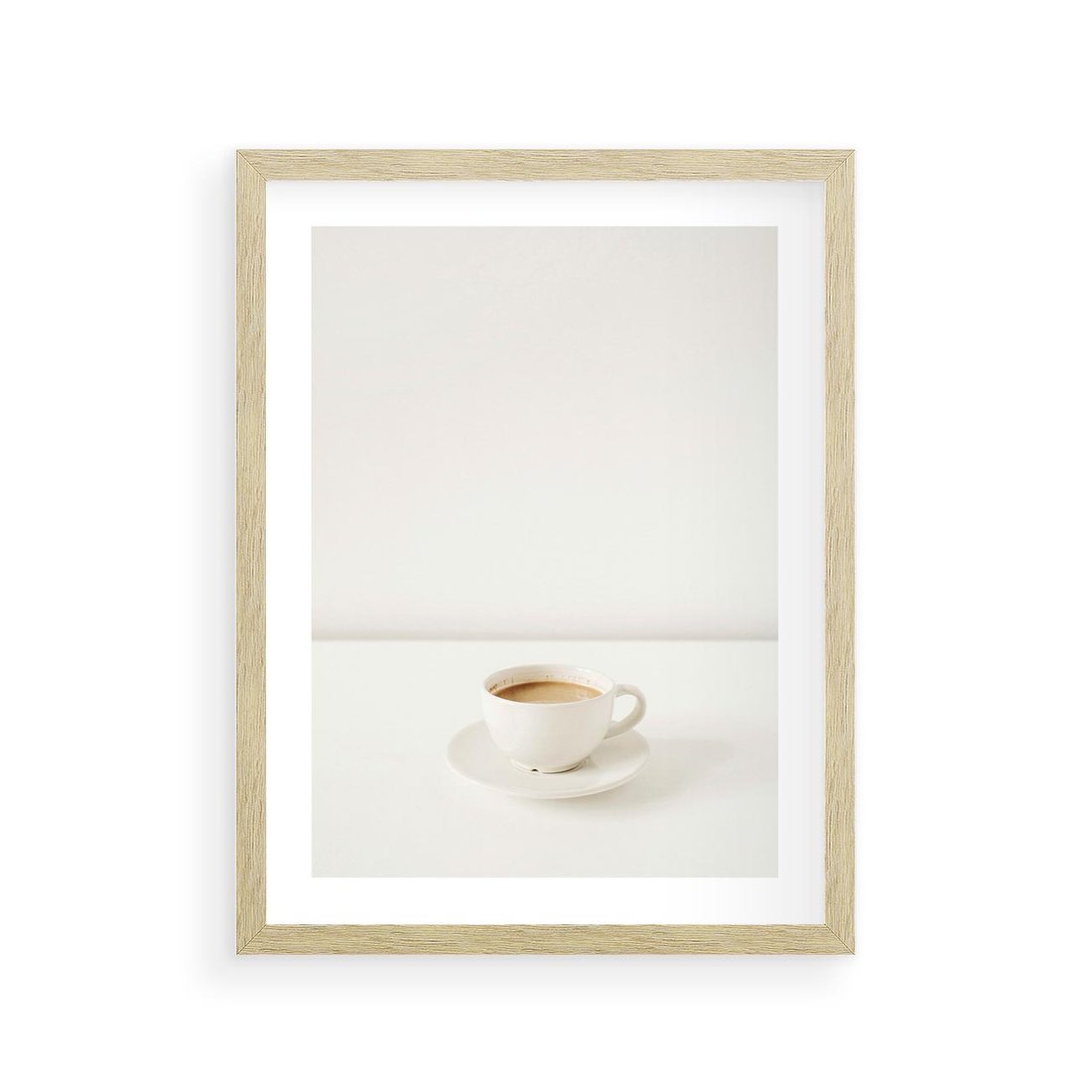 Plakat w ramie 30x40 - Kawa w Prostocie - kawa w filizance, białe tłó - rama drewno