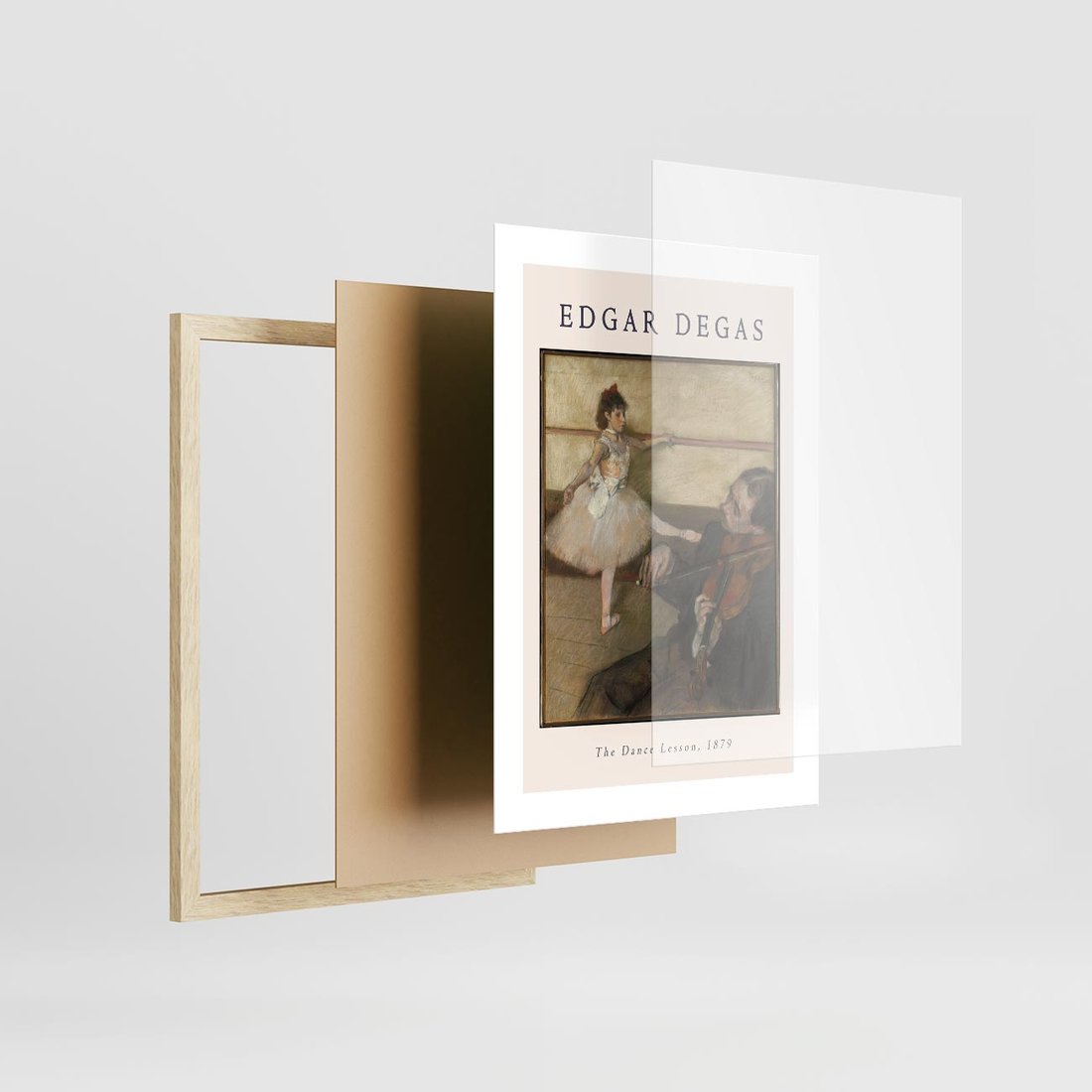 Reprodukcja słynnego obrazu Edgar'a Degasa "Lekcje Tańca", który przedstawia młode baletnice podczas lekcji tańca w eleganckim i klasycznym stylu.