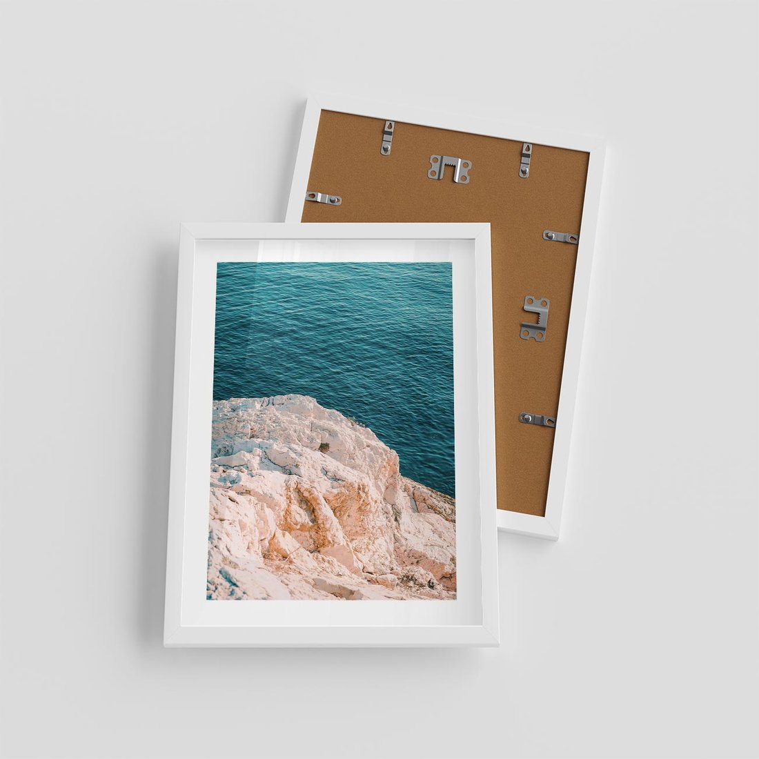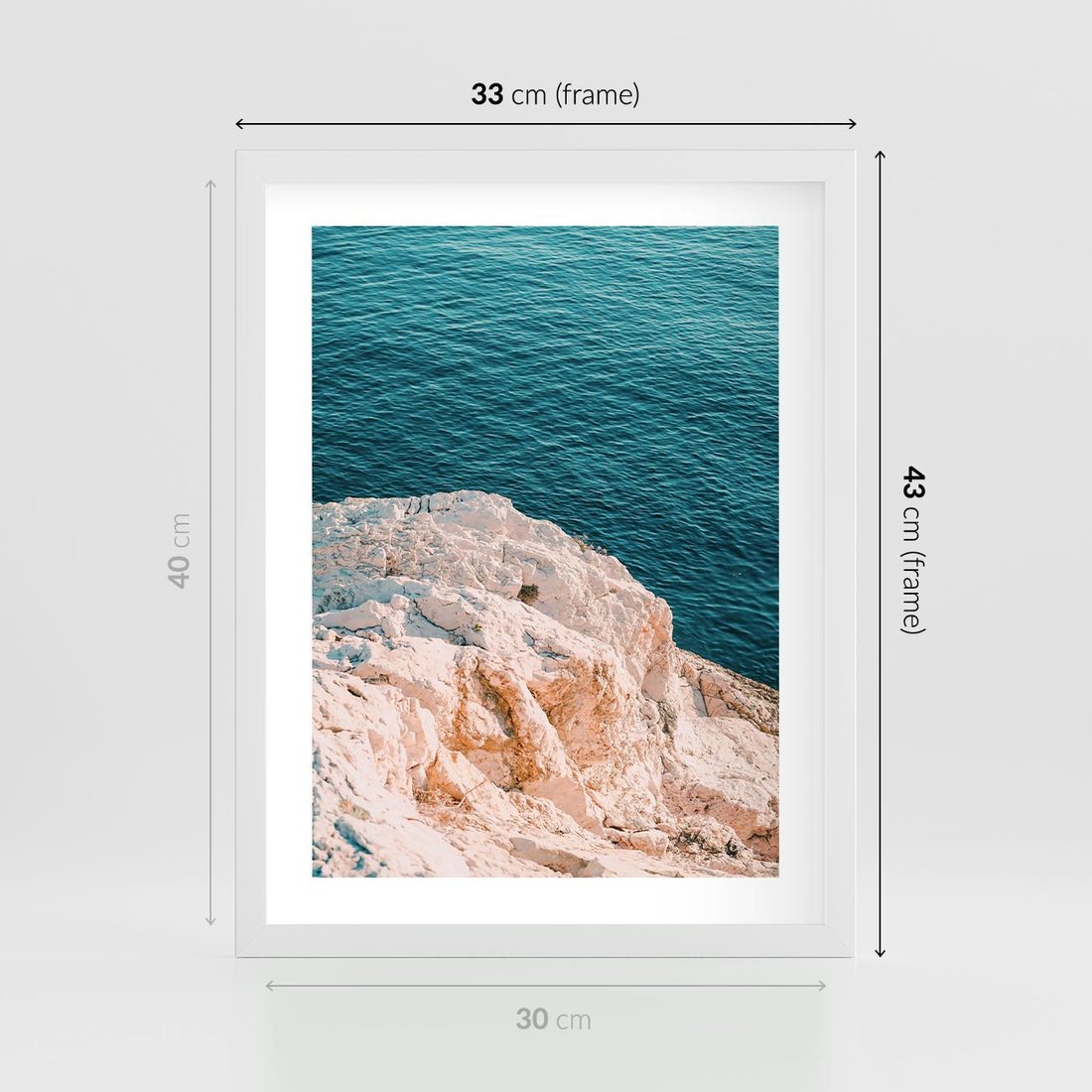 Plakat w ramie 30x40 - Klifowy Horyzont: Brzeg Morza - brzeg morza, klify - rama biała