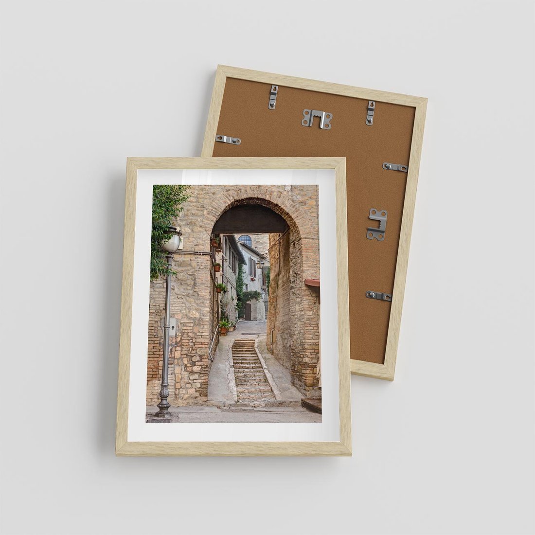 Plakat w ramie 30x40 - Klimatyczna Uliczka w Grecji - uliczka, Grecja - rama drewno