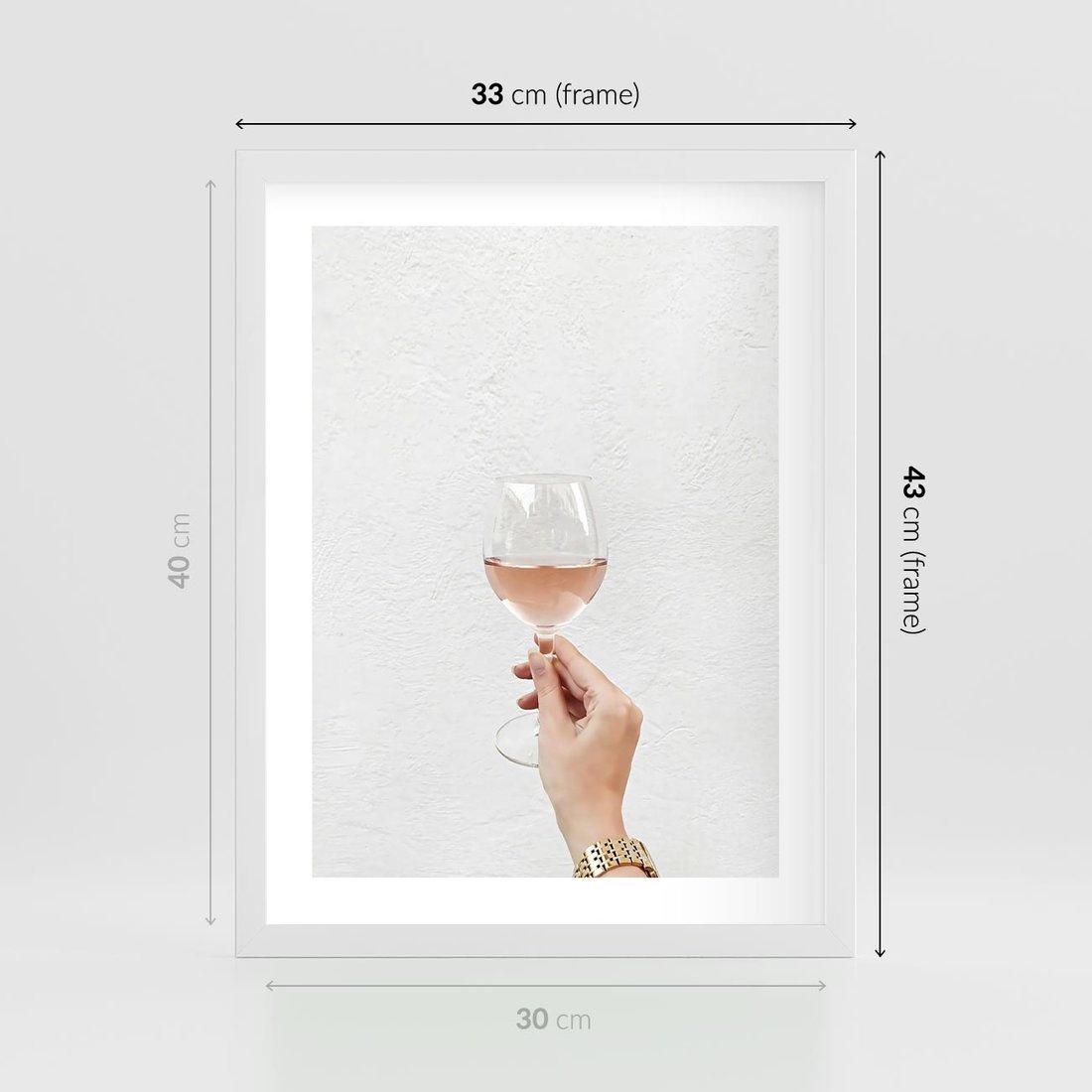 - Plakat w ramie 30x40 - Kobieca Dłoń i Różowe Wino