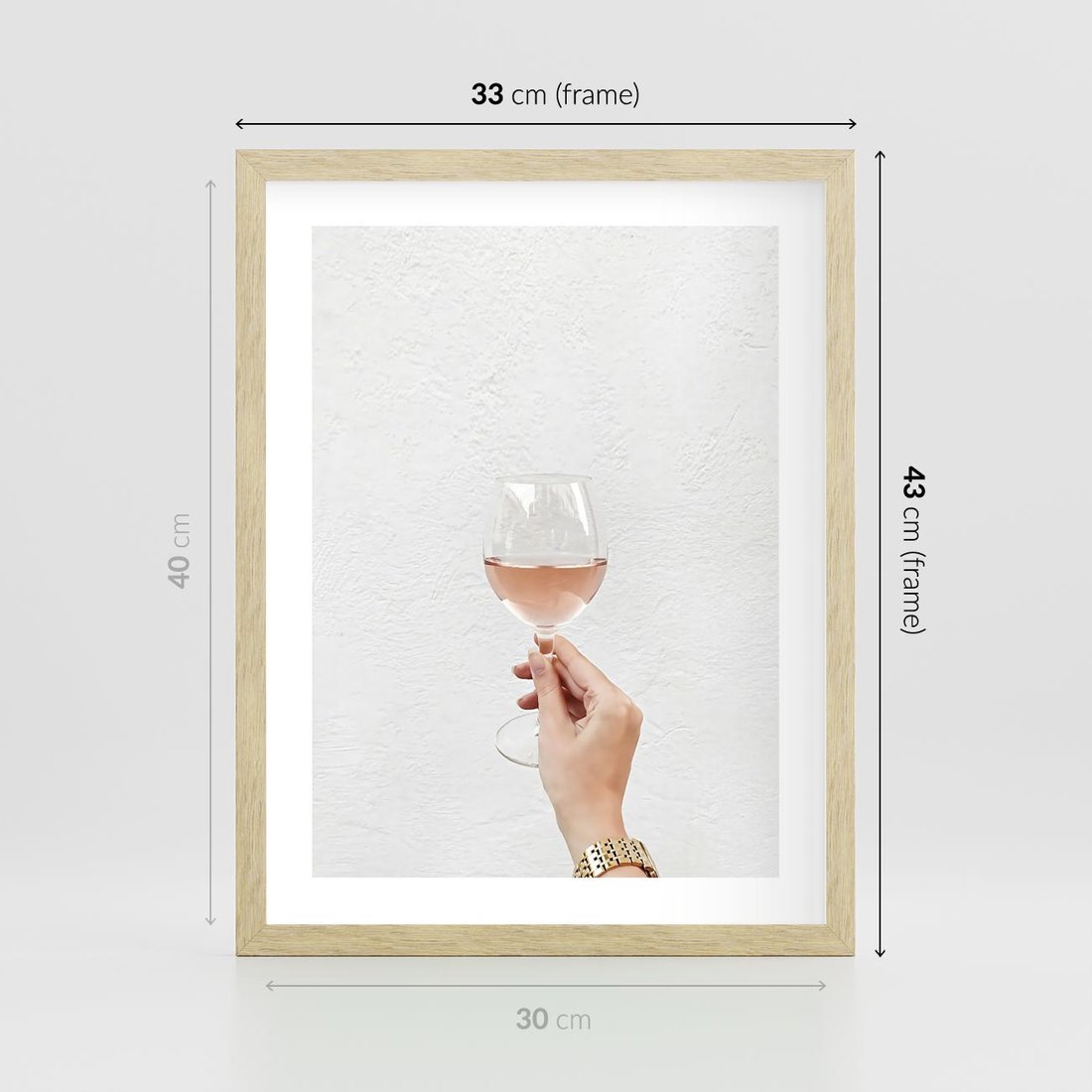 - Plakat w ramie 30x40 - Kobieca Dłoń i Różowe Wino