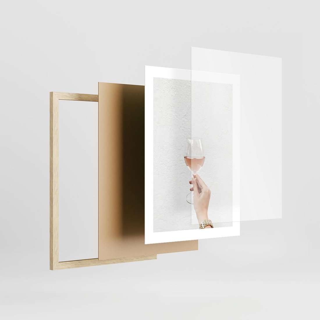 Plakat w ramie 30x40 - Kobieca Dłoń i Różowe Wino - kieliszek różowego wina, kobieca dłoń - rama drewno