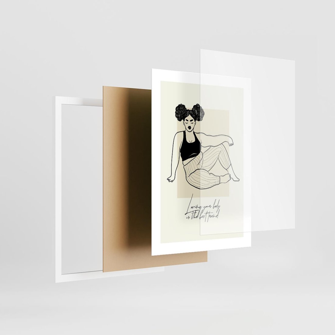 Ten nowoczesny plakat ukazuje kobietę i dziewczynę, oddając piękno różnorodności. Wraz z przekazem samoakceptacji i body positive, sztuka ta inspiruje do kochania i celebracji własnej skóry.