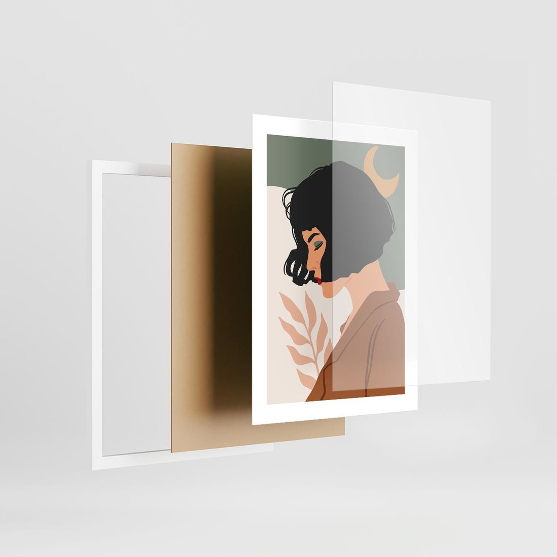 Odkryj urok nowoczesnego plakatu w stylu retro, prezentującego delikatny portret kobiety w stonowanych, subtelnych kolorach. To artystyczne połączenie przeszłości i współczesności, tworzące elegancką kompozycję pełną wyrafinowanego uroku.