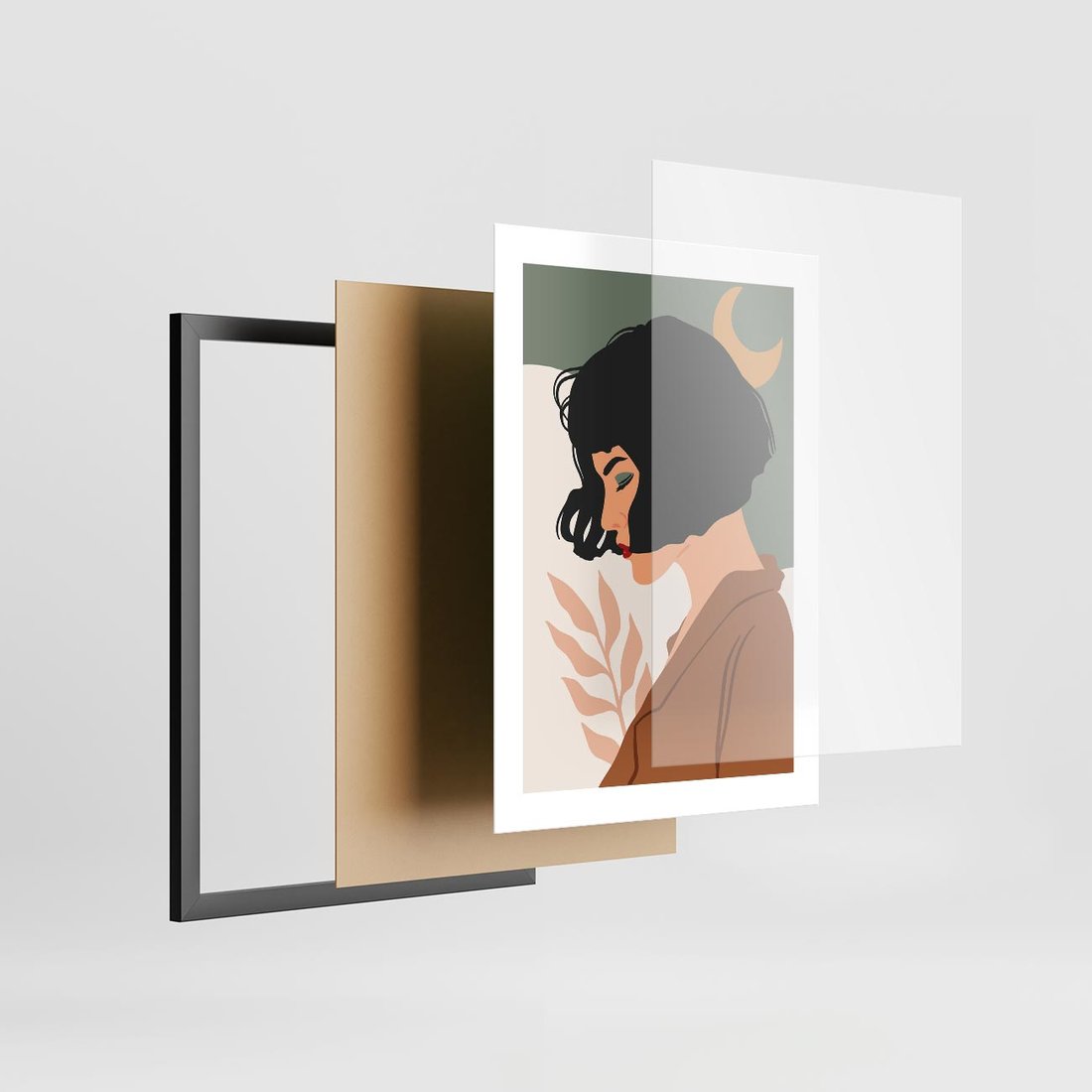 Odkryj urok nowoczesnego plakatu w stylu retro, prezentującego delikatny portret kobiety w stonowanych, subtelnych kolorach. To artystyczne połączenie przeszłości i współczesności, tworzące elegancką kompozycję pełną wyrafinowanego uroku.